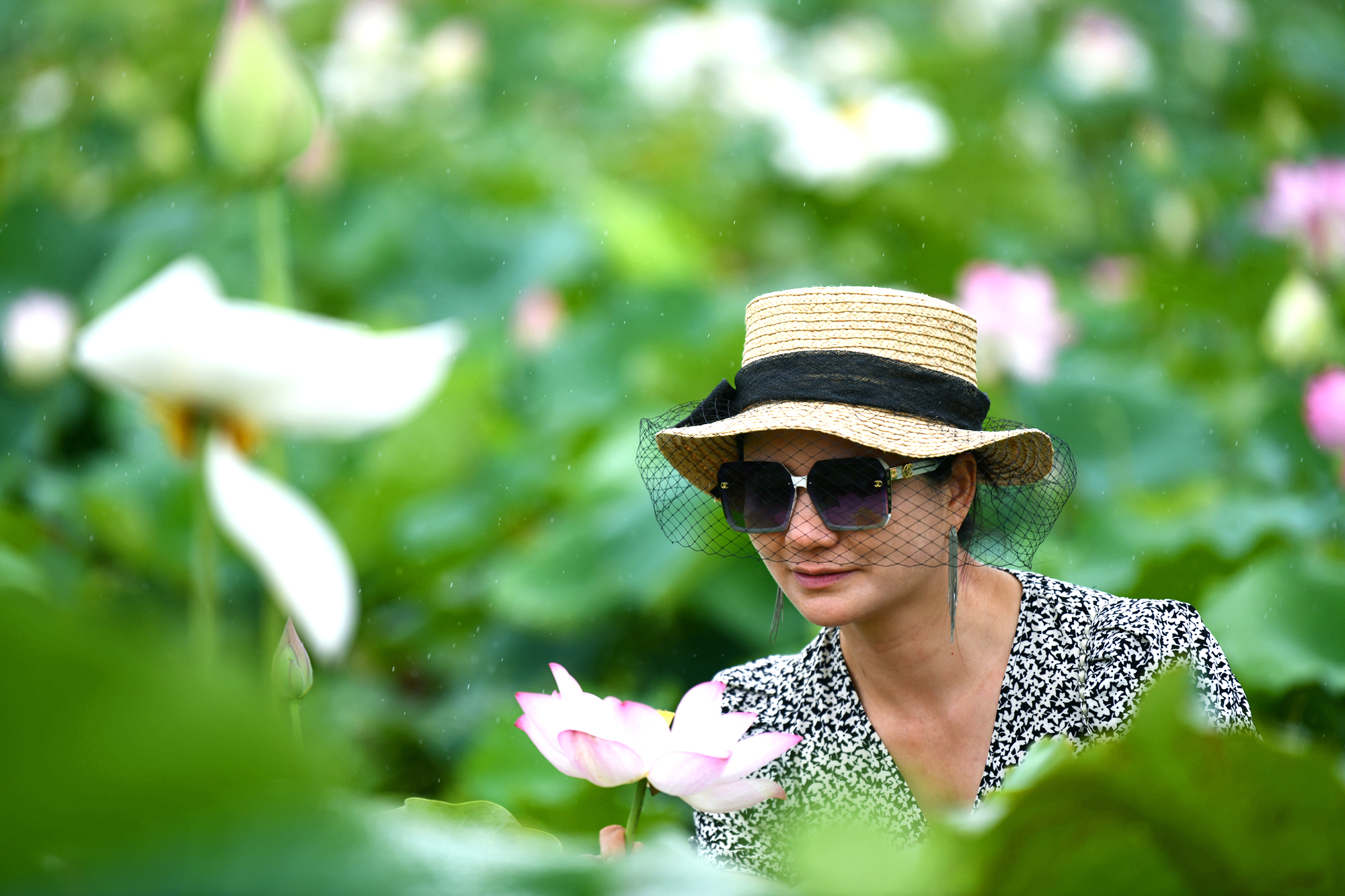 2025年7月22日,大暑时节,湖北省咸宁市通城县四庄乡清水村荷花竞相开放,美不胜收,吸引了不少游客雨中漫步荷塘,拍照赏花,采摘莲蓬,享受夏日荷塘美景。