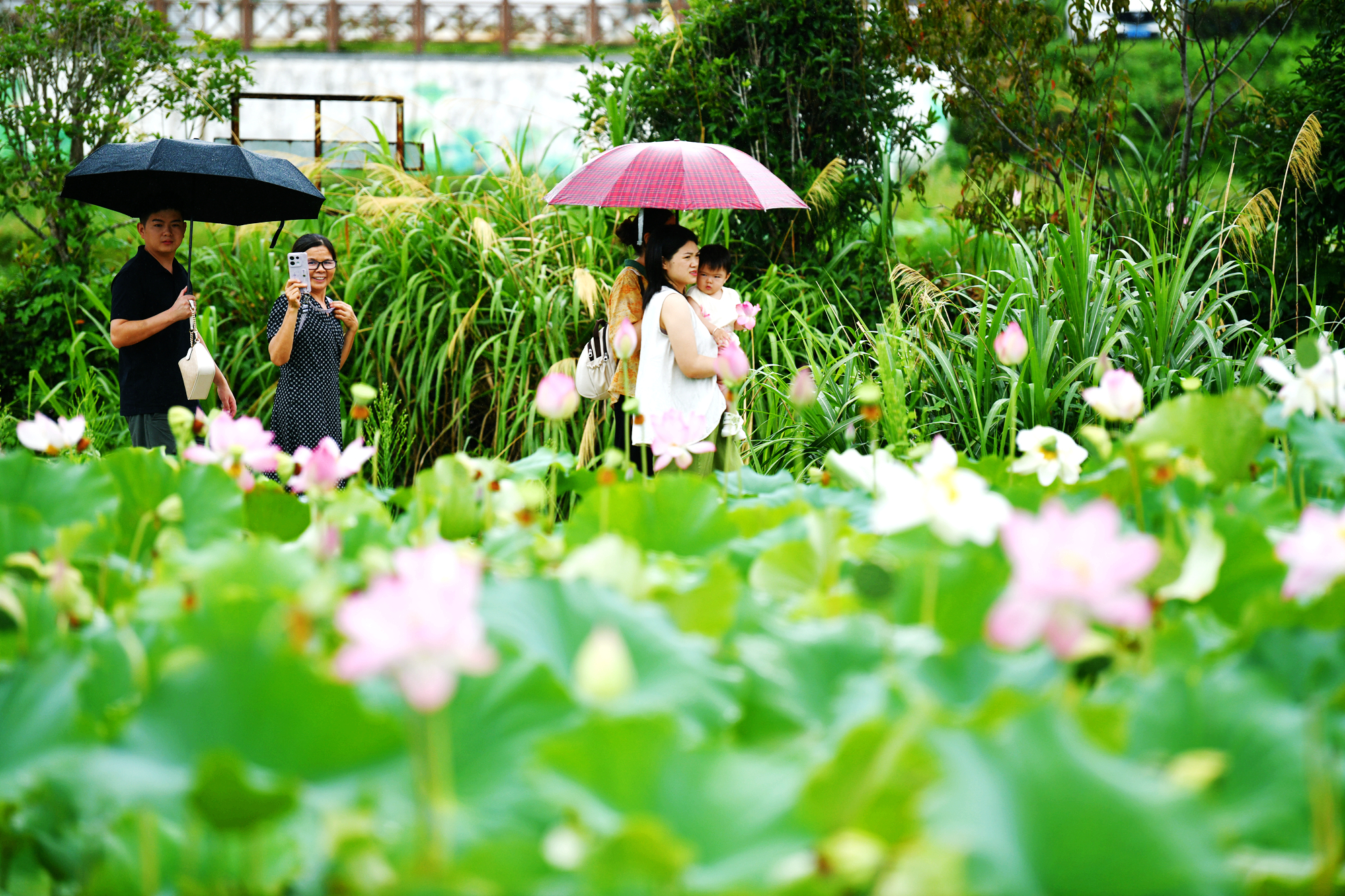 【通讯员 刘建平】2025年7月22日,大暑时节,湖北省咸宁市通城县四庄乡清水村荷花竞相开放,美不胜收,吸引了不少游客雨中漫步荷塘,拍照赏花,采摘莲蓬,享受夏日荷塘美景。