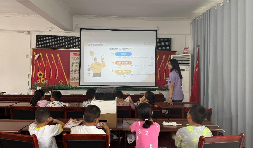 在“梦想望远镜”心理课堂上,团队成员黄渝涵以生动比喻引导孩子们认识到:梦想如同望远镜,能帮助穿越现实迷雾,看见未来的无限可能。她巧妙结合认知行为疗法理念,通过浅显易懂的互动游戏和情景对话,教导孩子们识别日常生活中的不同情绪信号,理解情绪并无好坏之分,关键在于如何健康表达与管理。孩子们纷纷举起自制的“望远镜”,畅谈心中所向往的未来角色——教师、医生、农技专家……稚嫩的话语背后,是价值观的初步萌发与对未来的积极憧憬。“老师告诉我们,难过或生气时,可以像用望远镜看星星一样,先停下来‘看一看’自己的心,这让我觉得那些不舒服的感觉没那么可怕了。”一位参与课程的小男孩课后分享道。