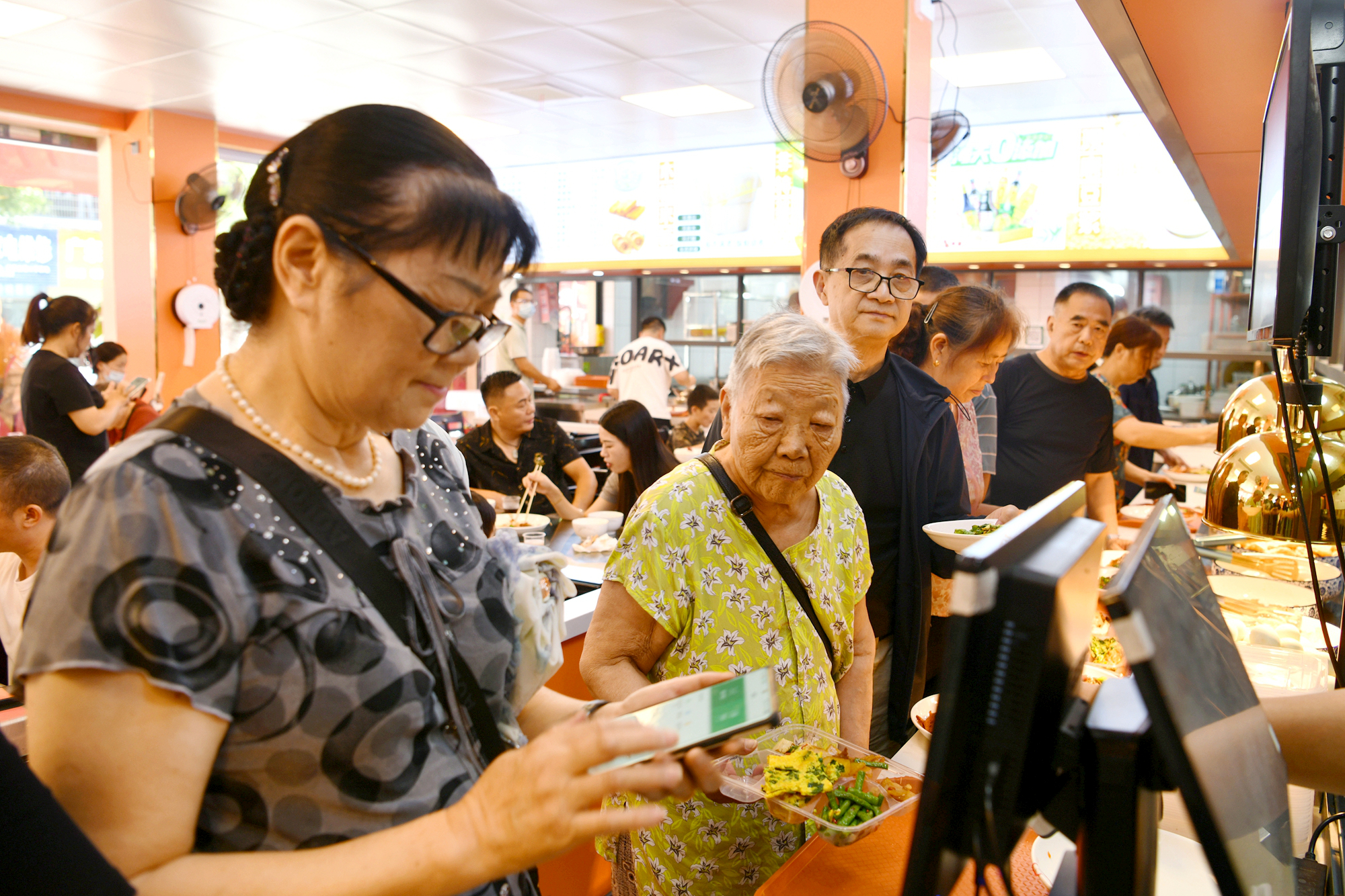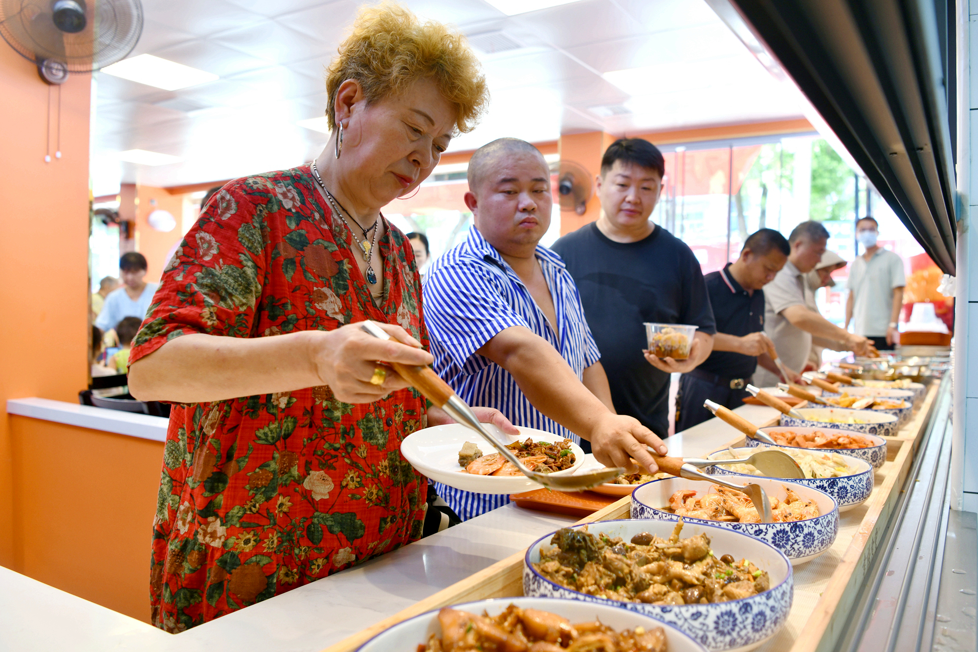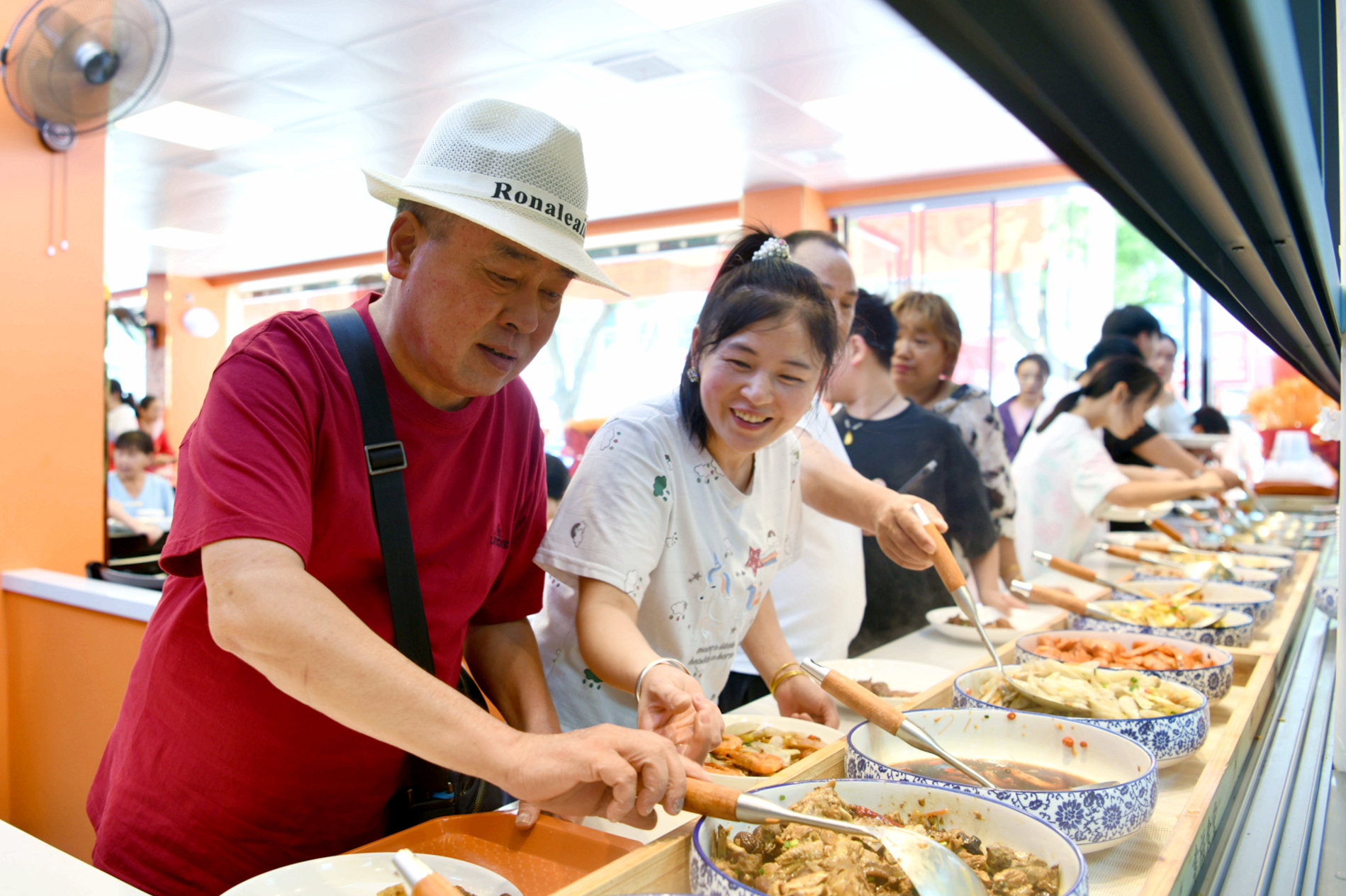 幸福食堂推出创新“五吃”服务模式:普通居民可享30种荤素菜品量贩自选;60岁以上老人、低保户、残疾儿童等特殊群体优惠;外卖员、环卫工人等户外工作者错峰就餐可享9.9元,任吃;行动不便的低收入人群手机点选爱心餐,由志愿者送餐上门。