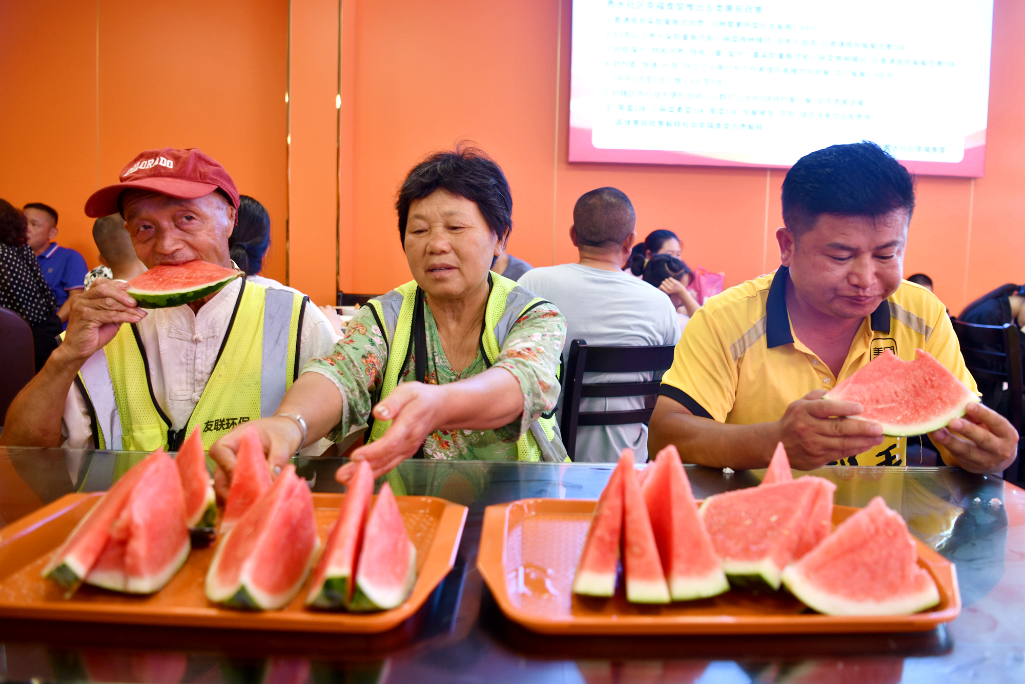 幸福食堂还开展“夏日送清凉”公益活动,为户外劳动者撑起“遮阳伞”,食堂还免费提供西瓜、绿豆汤、矿泉水及防暑药品。该活动通过实惠餐食与消暑物资双保障,让高温下的劳动者既暖胃又暖心,彰显社区幸福食堂里的民生大爱。