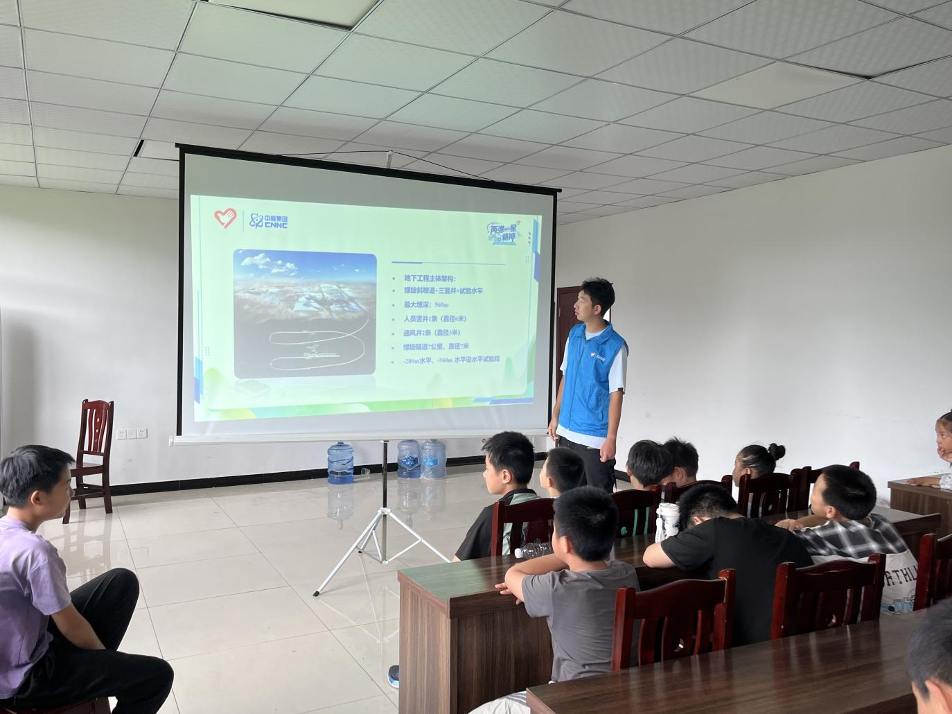互动环节,老师组织了“恐怖箱”等小游戏,将核知识融入其中,让同学们在轻松愉快的氛围中加深理解。过程中,老师向同学们介绍了我国核工业的发展现状,特别是“华龙一号”等自主三代核电技术的突破,以及核技术在工业、农业、医学、环境、安保、军事等领域的广泛应用。