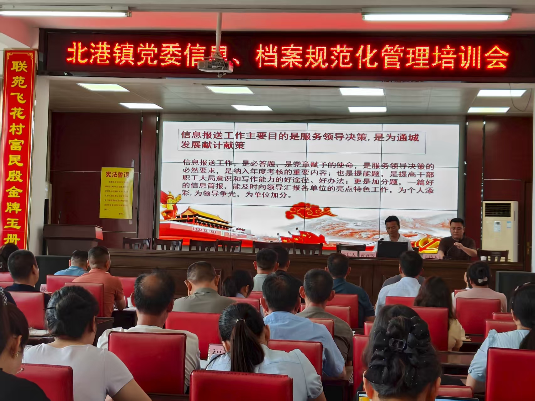 此次培训会,是北港镇提升基层治理效能的又一重要举措。培训内容涵盖了党委信息报送和档案规范化管理两大主题,旨在进一步强化村镇干部的信息意识和档案管理能力。