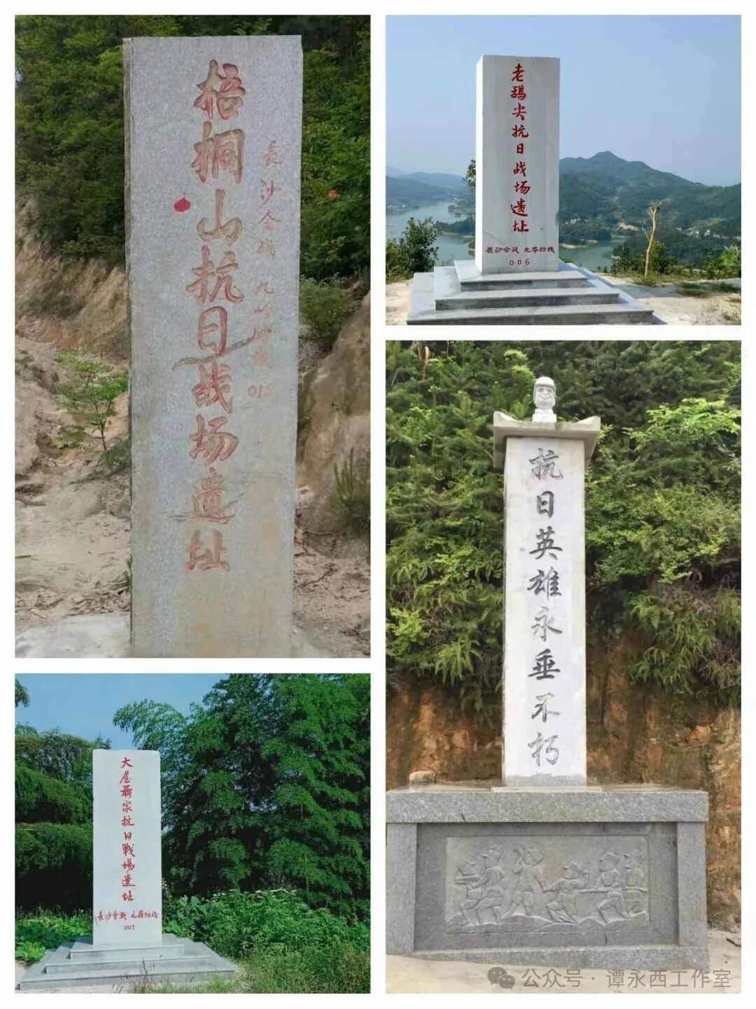 (说明:1.感谢吕杏庐先生、陈志明先生、黎红霞女士提供了图片;2.气壮山河、人类之光两词为天岳关无名英雄墓题词。)