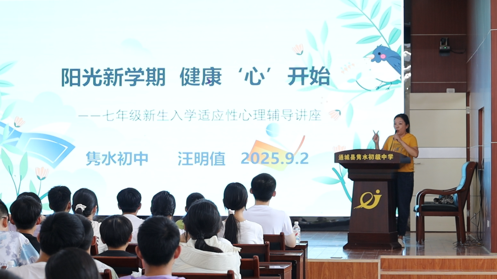 【全媒体记者 张家龙 骆博】9月2日,通城县隽水初级中学围绕初中阶段学生成长的实际需要,开展以“心理健康、中华传统文化、思想政治、法治教育、崇尚科学”为核心的“开学第一课”,从五个关键维度系统引导学生们树立新学期的成长目标。