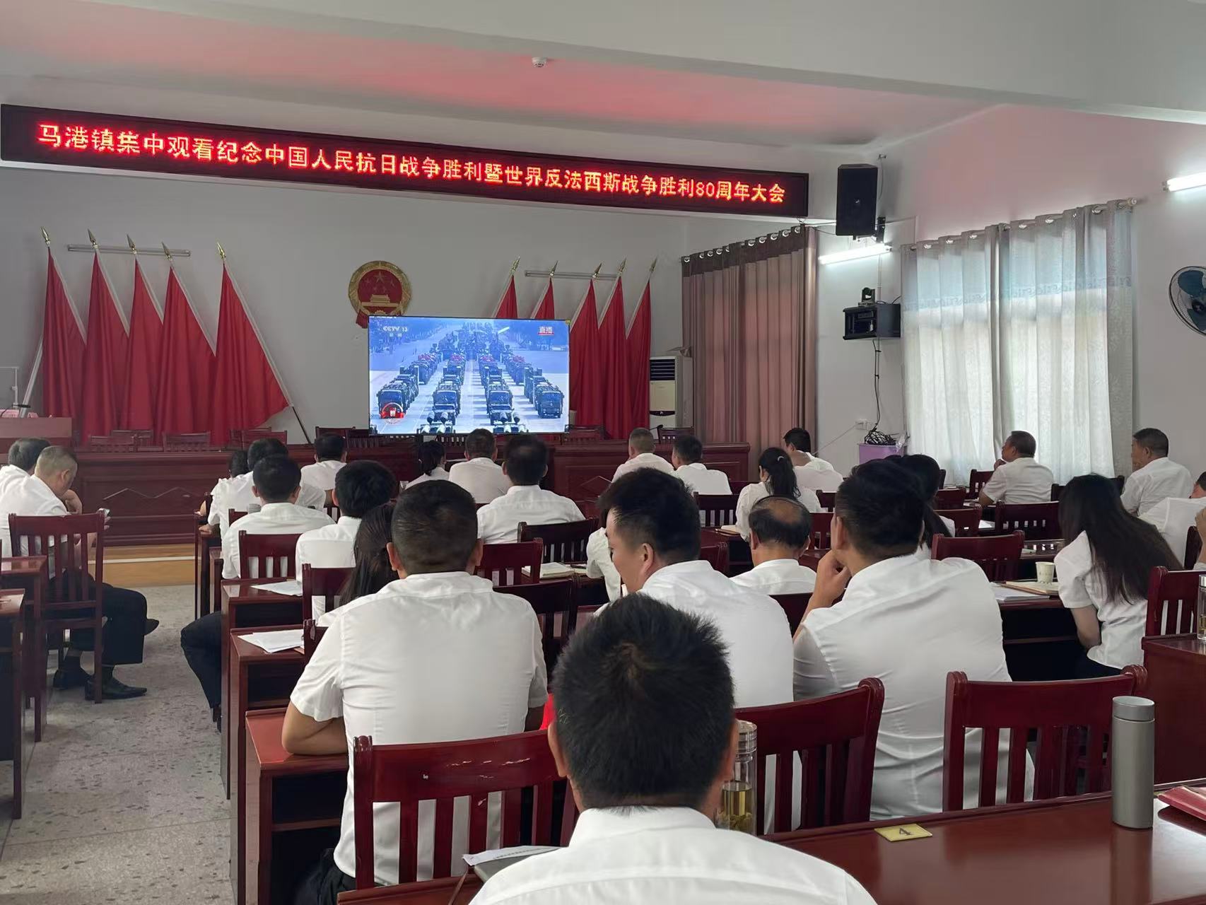 【通讯员 孙付浩】9月3日上午,纪念中国人民抗日战争暨世界反法西斯战争胜利80周年大会在北京天安门广场隆重举行。马港镇全体干部群众集中观看九三盛大阅兵直播,澎湃的爱国激情在心中激荡,决心在新时代奏响中华儿女的奋进凯歌。