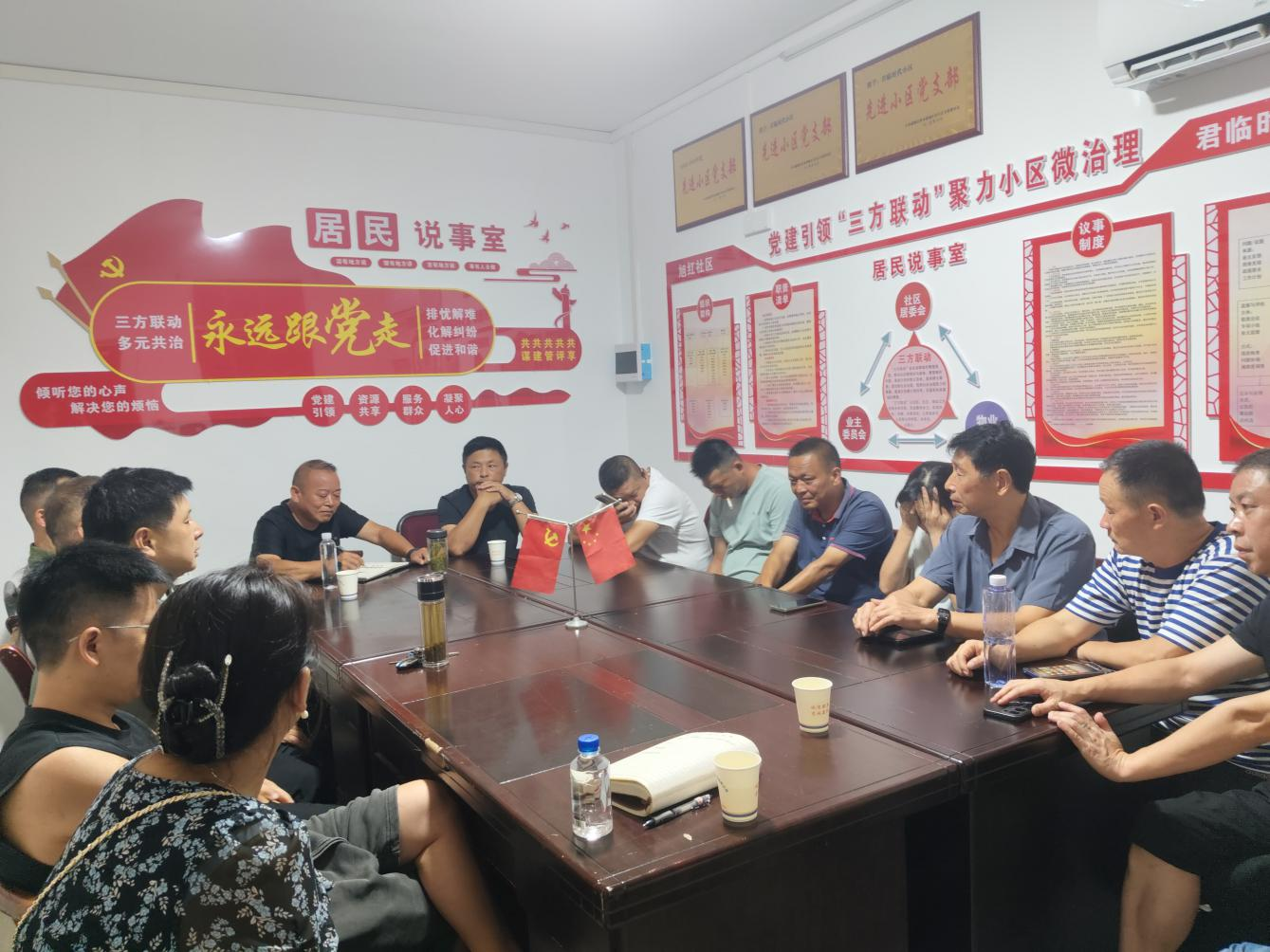 面对居民之间的不同意见,小区运用“邻里协商——楼栋协商——社区协商”三步工作法:先由党员与热心居民开展初步沟通;再由社区组织“三方联动”召开楼栋会讨论具体方案;遇到难点问题启动“社区协商”,邀请县职能部门、镇包保干部等共同会商。累计召开各级协调会、“圆桌会”60余场,实现群众意见充分表达、矛盾有效化解。