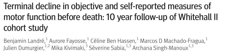 《英国医学杂志》刊登的一项研究显示,65岁后,运动能力越差,死亡风险越高。并且从死亡前10年开始,就会出现运动能力衰退迹象。