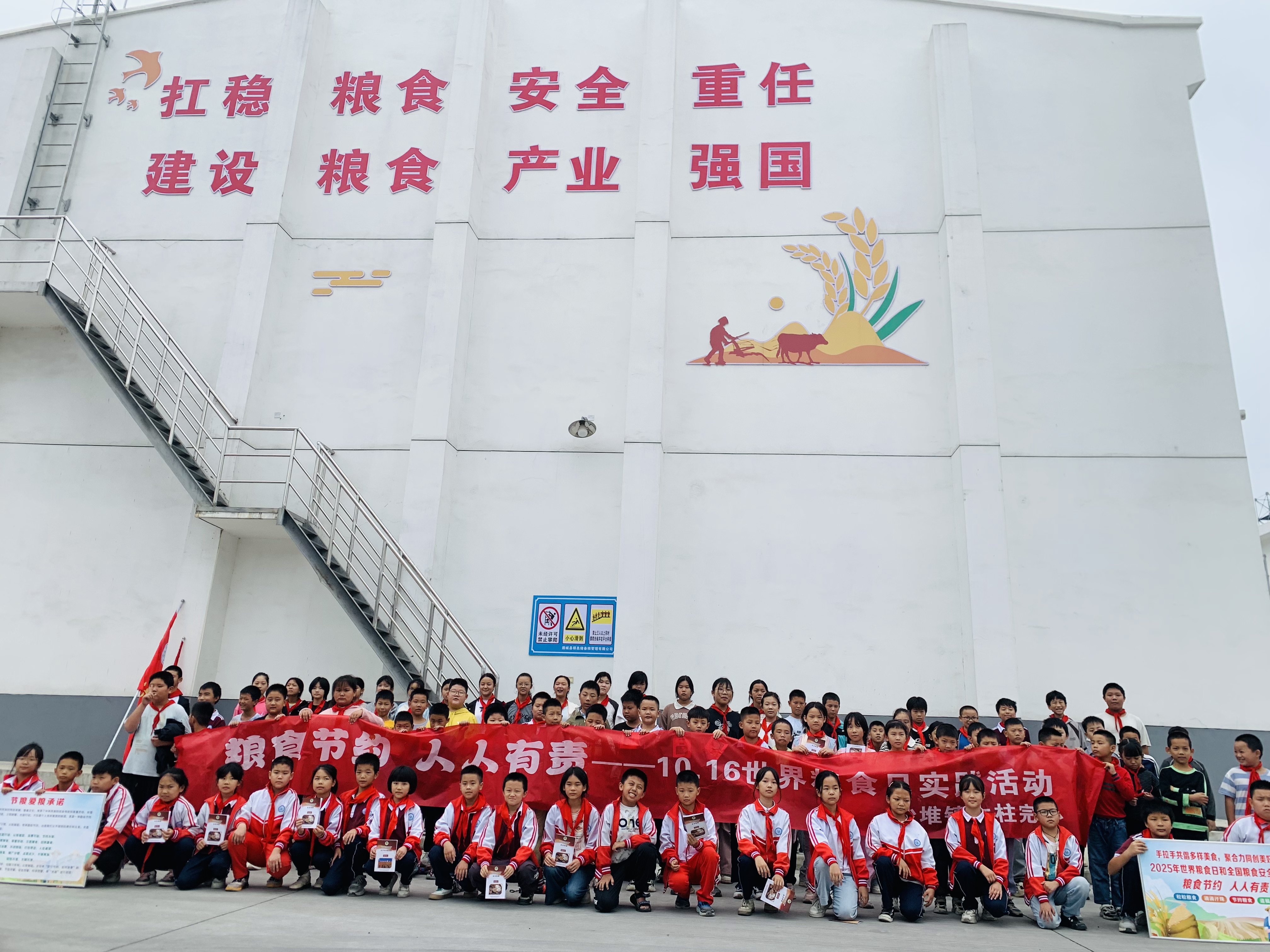 最后,同学们在 “粮食节约,人人有责” 的横幅前许下节约承诺并表达了对粮食安全的新认识和节约粮食的决心。此次活动让队员们走出课堂,了解了粮食储备的重要作用。下一步,学校会继续加强“爱粮节粮”教育,让学生养成节约粮食的好习惯。