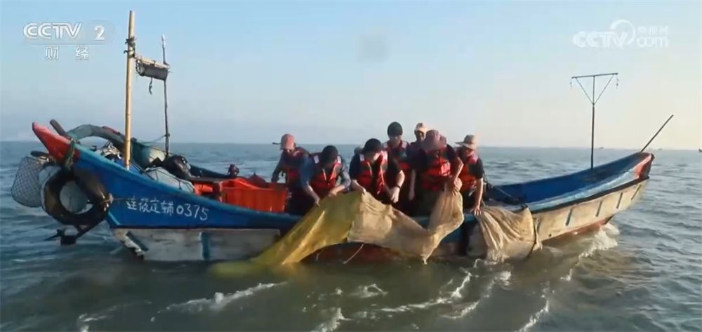 凌晨四点,在连江县一处码头,村民们早早地驾船来到附近海域,放下渔网,采取三条渔船编组作业的方式,将长约2—3厘米的丁香鱼捕获上船。