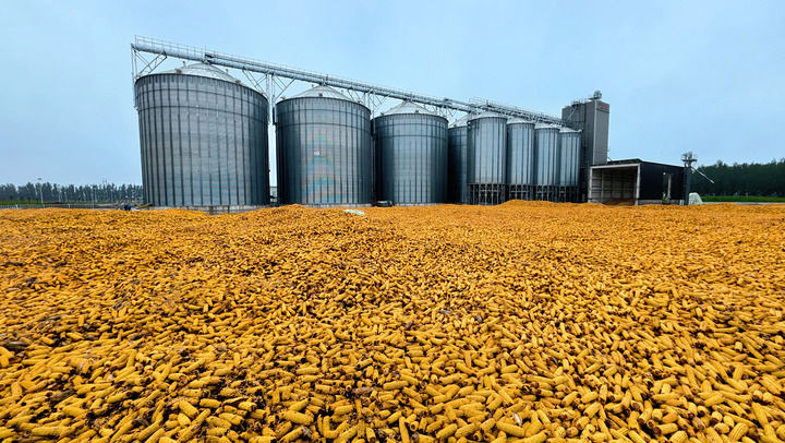 与传统储粮用的浅圆仓相比,独特的外形让粮食气膜仓格外显眼。