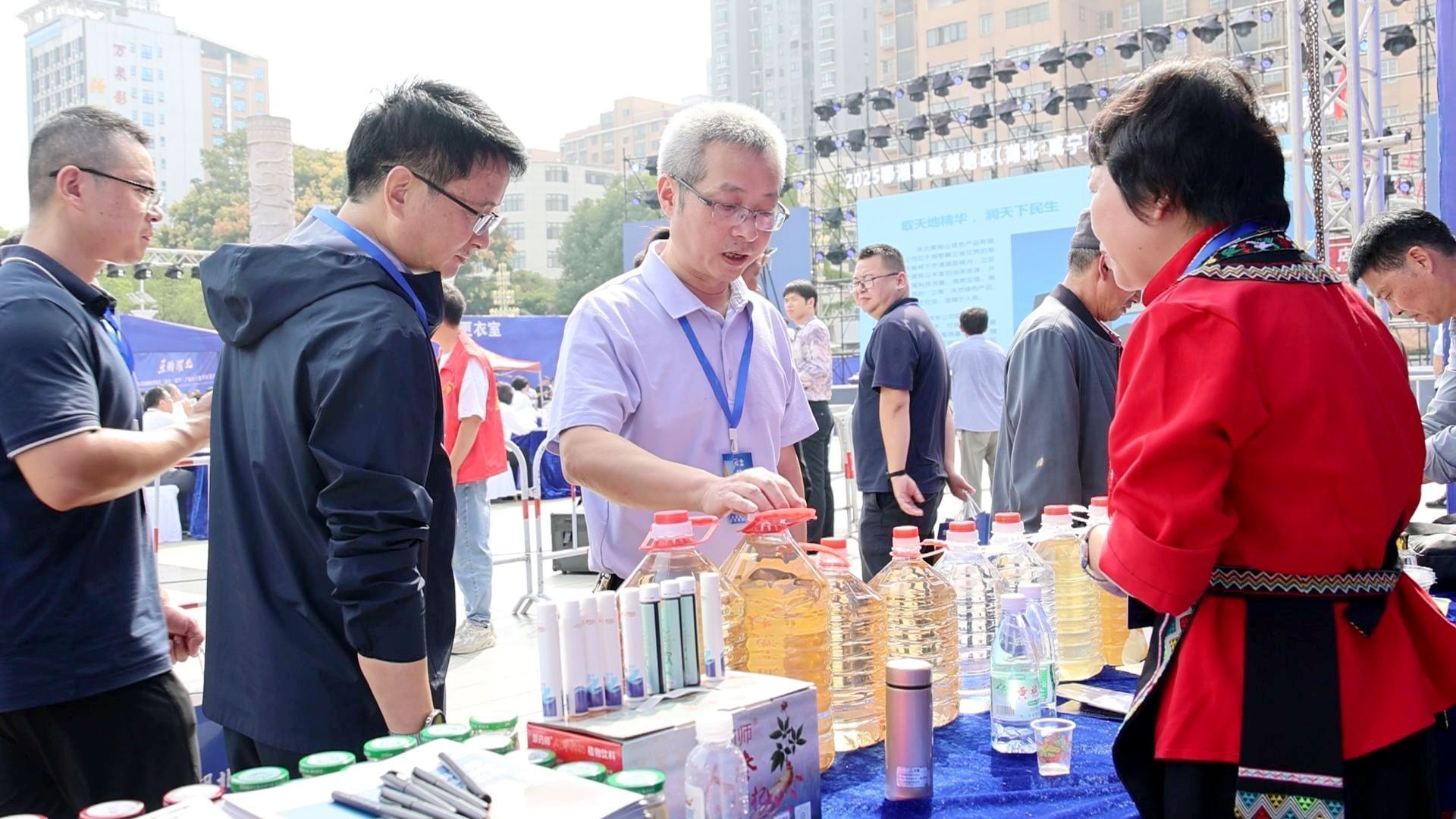 与会人员还前往通城县银山广场,参加2025鄂湘赣毗邻地区(湖北·咸宁)产销大会暨招商签约活动”启动仪式,走访了活动现场的多个展区,通过参观企业推介、农产品展销、直播带货等环节,近距离感受电商赋能与传统产业融合所带来的消费新活力,为后续开展跨区域宣传报道积累新闻素材。