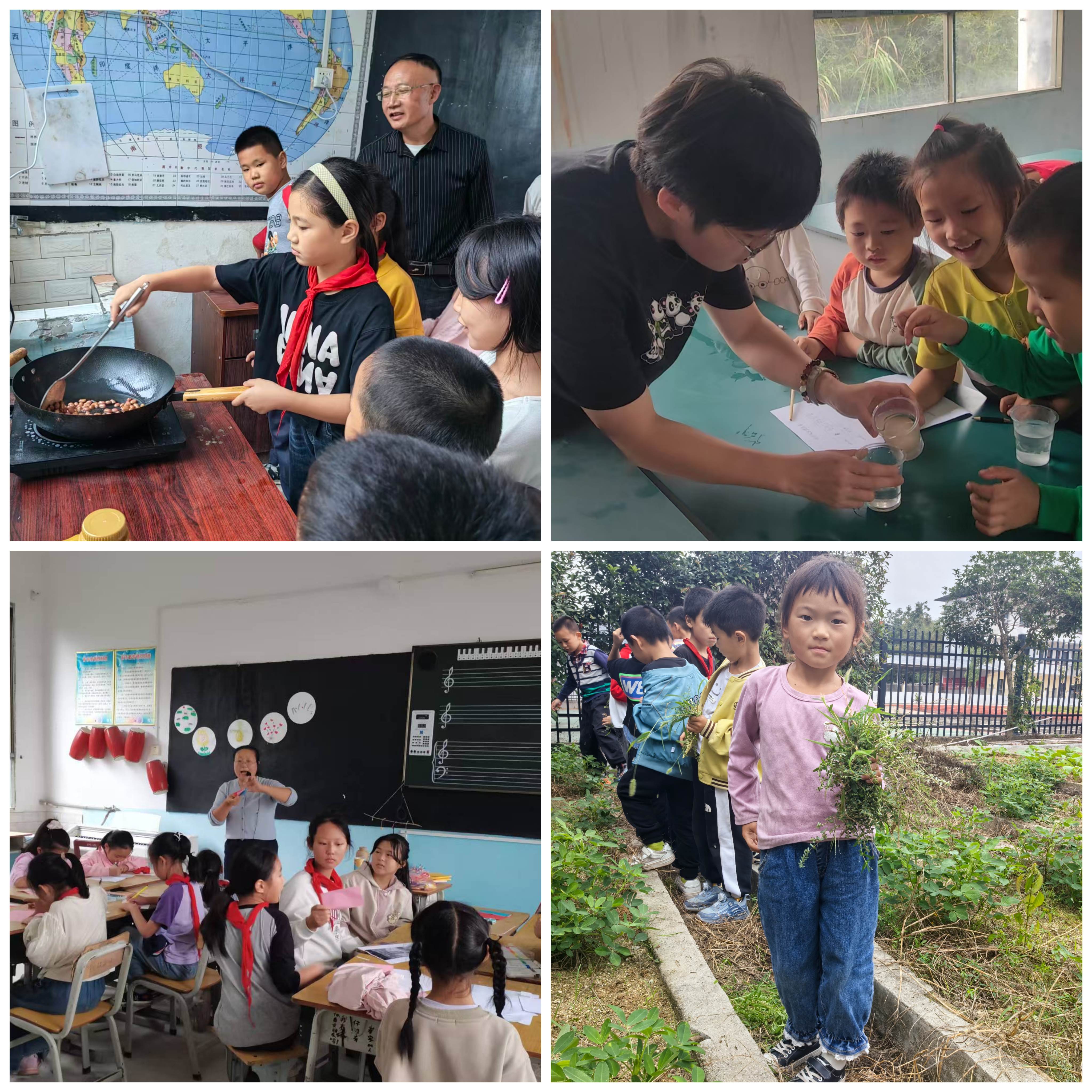 手工室传来欢呼声——七彩卡纸在孩子们手中“绽放”成五彩烟花;隔壁实验室里,一枚鸡蛋在盐水中缓缓上浮,引来阵阵惊叹;食育教室热气腾腾,铁锅里的花生米噼啪弹跳,被称为“会跳舞的花生米”;教学楼后的荒草地,“小农夫”们用半小时完成除草,并把落叶拼成一面“树叶国旗”。