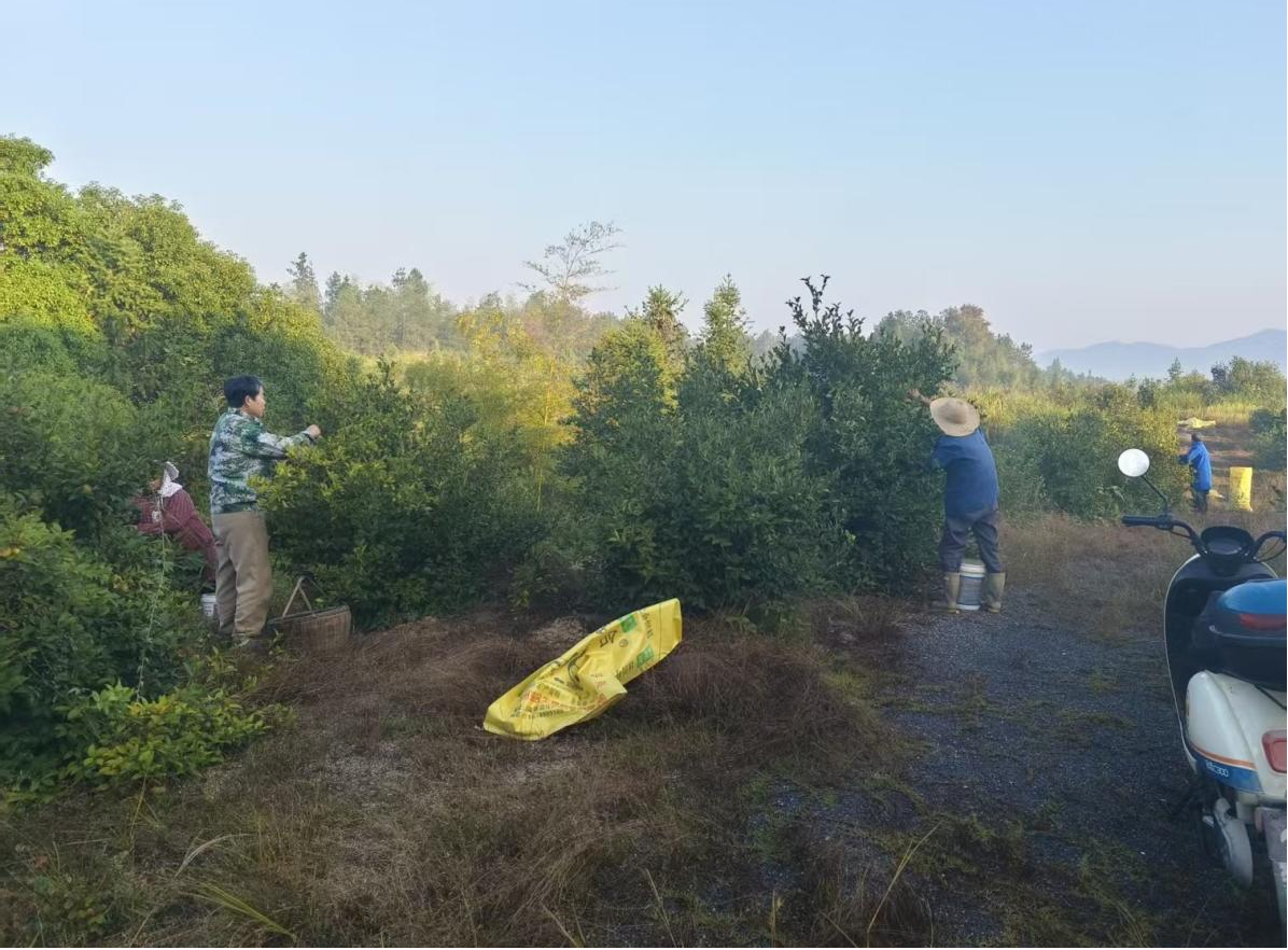 除了集体稻田的好收成,新联村集体油茶种植基地同样喜获丰收。在村后的山坡上,连片的油茶树郁郁葱葱,一颗颗饱满的油茶果挂满枝头。村民们在村集体组织下,背着竹筐有序采摘。