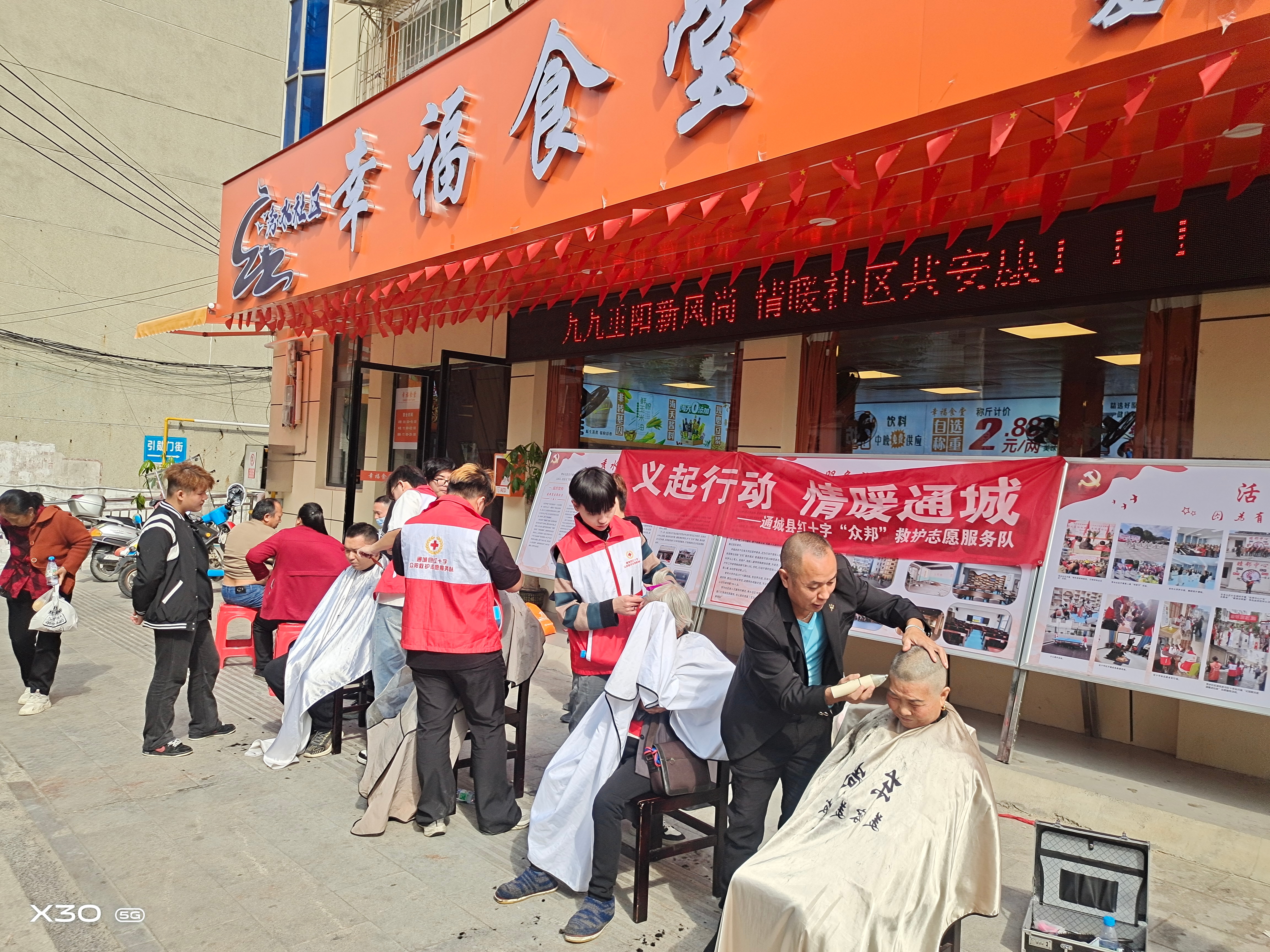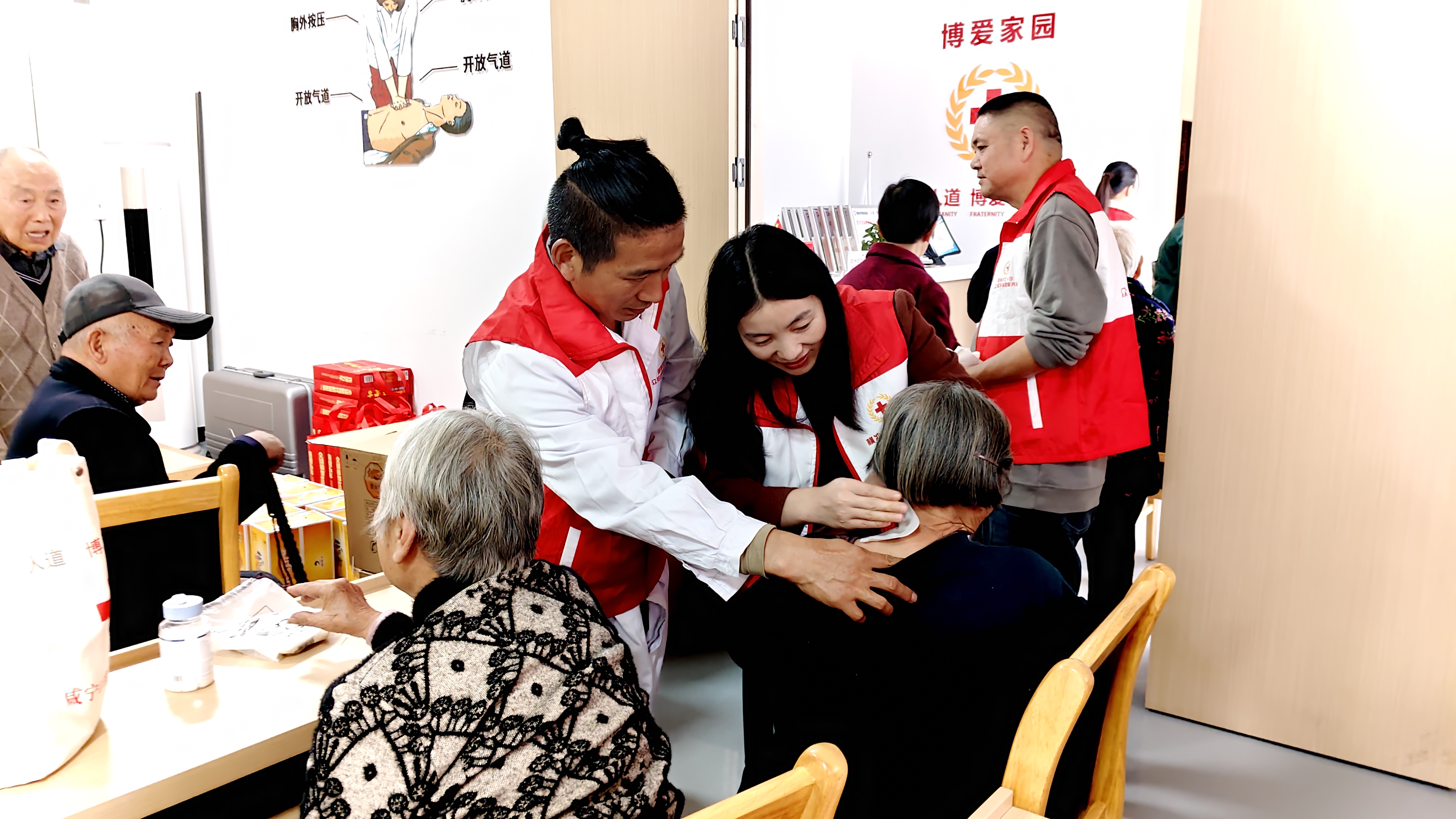 当天,红十字志愿者还在北港镇横冲村、秀水社区开展了义诊义剪志愿服务活动,医疗志愿者为老人们贴膏药、按摩、针灸,细致询问他们的身体状况和日常用药情况。同时,义剪志愿者则根据老人们的喜好和需求,精心修剪发型。一把剪刀、一把梳子,在志愿者娴熟的技艺下,老人们的精神面貌焕然一新。“年纪大了出门不方便,现在在家门口就能免费理发、看病,真是太贴心了!”刚理完发的张大爷看着镜子里的自己,脸上露出了满意的笑容。