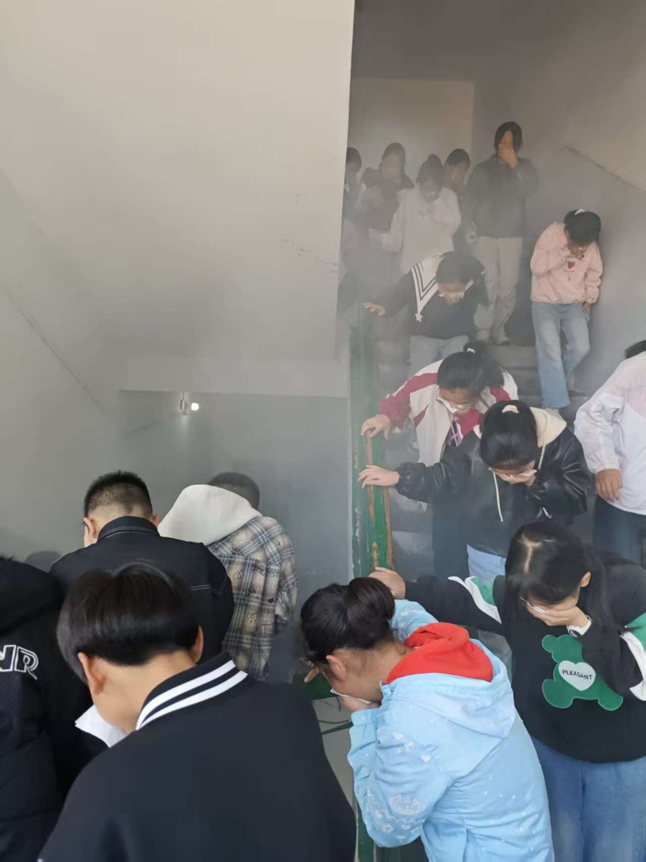 9时45分,随着一阵急促的消防警报声划破校园的宁静,演练正式拉开帷幕。各岗位负责老师立即到达指定地点,沉着指挥。正在上课的学生们在老师的带领下,迅速进入应急状态。大家用毛巾、衣袖等捂住口鼻,弯腰低头,按照预定疏散路线,快速、有序地从教学楼撤离。