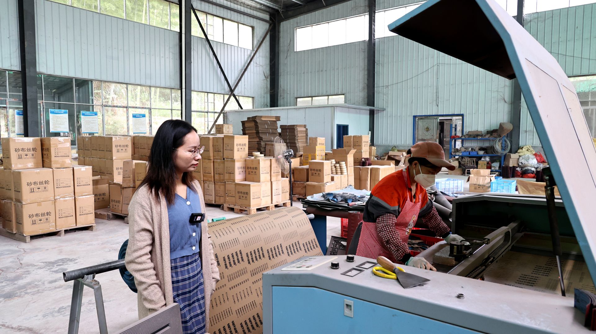 通城县鑫彬源新材料科技有限公司是关刀镇一家典型的返乡创业型企业。2018年,常年在外打拼的石春霞夫妇在乡情的感召下,回到家乡开始尝试创业,自主摸索并逐渐掌握了砂纸生产技术。起初只是个家庭小作坊,空间小、设备简陋,发展处处受限。就在她为扩大生产发愁时,关刀镇推出的乡村振兴微工厂政策给她带来了转机——政府出资建厂房,她只需支付租金就能直接入驻生产。
