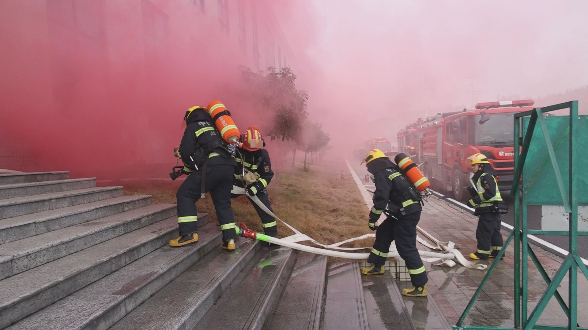 活动现场开展了灭火救援演练。演练模拟县内某公司生产车间因动火作业严重违反操作规程,突发火灾,现场瞬间充斥高温有毒烟气,并有数名员工未能及时撤离,情况万分危急。