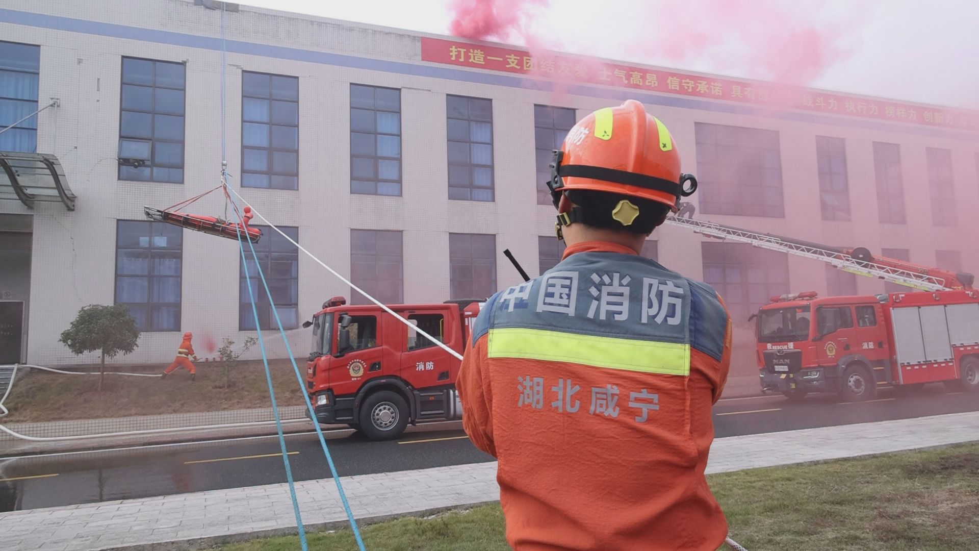 接到“警情”后,通城县消防救援大队快速响应,立即调集8辆消防车和36名精干指战员火速奔赴“事故”现场。救援力量根据预案,科学编组,迅速成立破拆组、内攻灭火组、高空救援组等多个作战单元,展开了一场与时间赛跑的生命救援与火灾扑救行动。