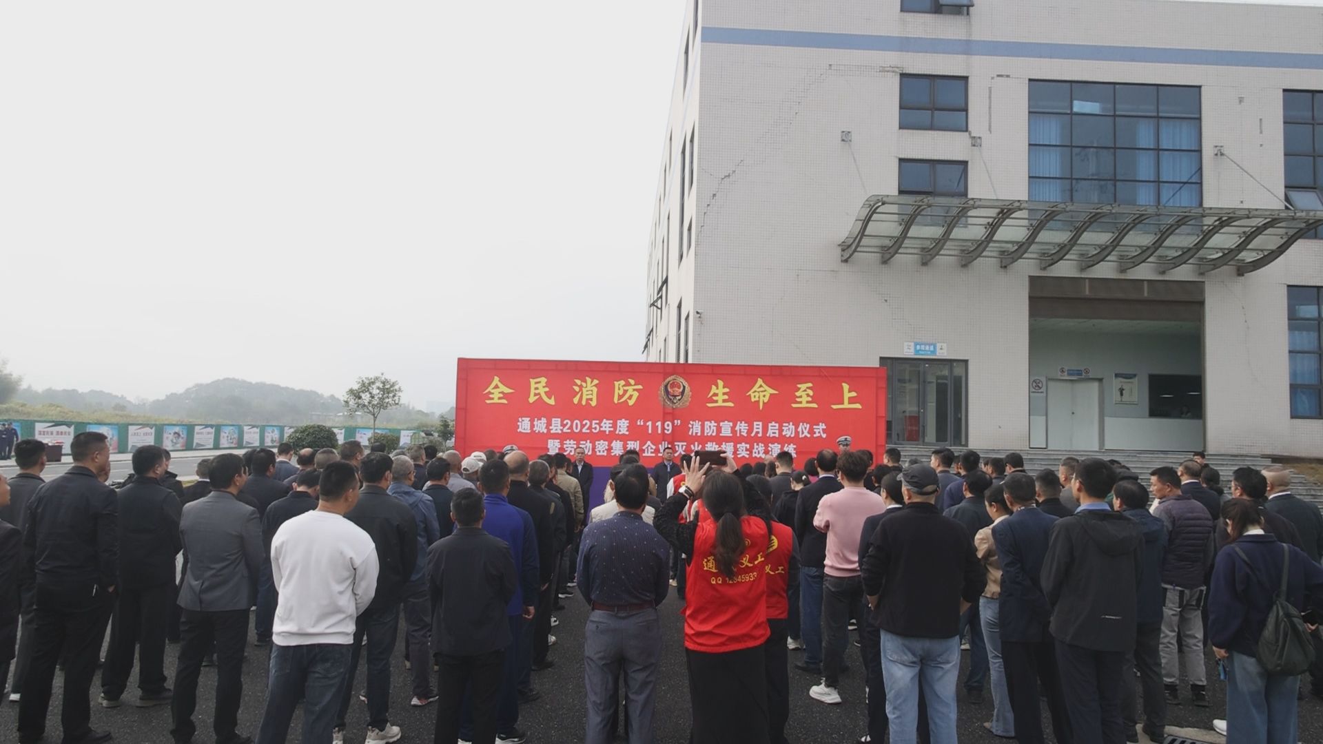 【全媒体记者 方思奇】今年11月9日是第34个全国消防日,11月为全国消防宣传月,今年主题为“全民消防、生命至上——安全用火用电”。11月7日,通城县2025年度“119”消防宣传月活动启动仪式暨劳动密集型企业灭火救援实战演练在湖北瀛新精密电子有限公司举行。县政府副县长、县公安局局长潘桥出席仪式并讲话。县委宣传部、县委政法委、县应急管理局、县消防救援局、县消防志愿者服务队等相关部门及单位代表共计130余人参加。