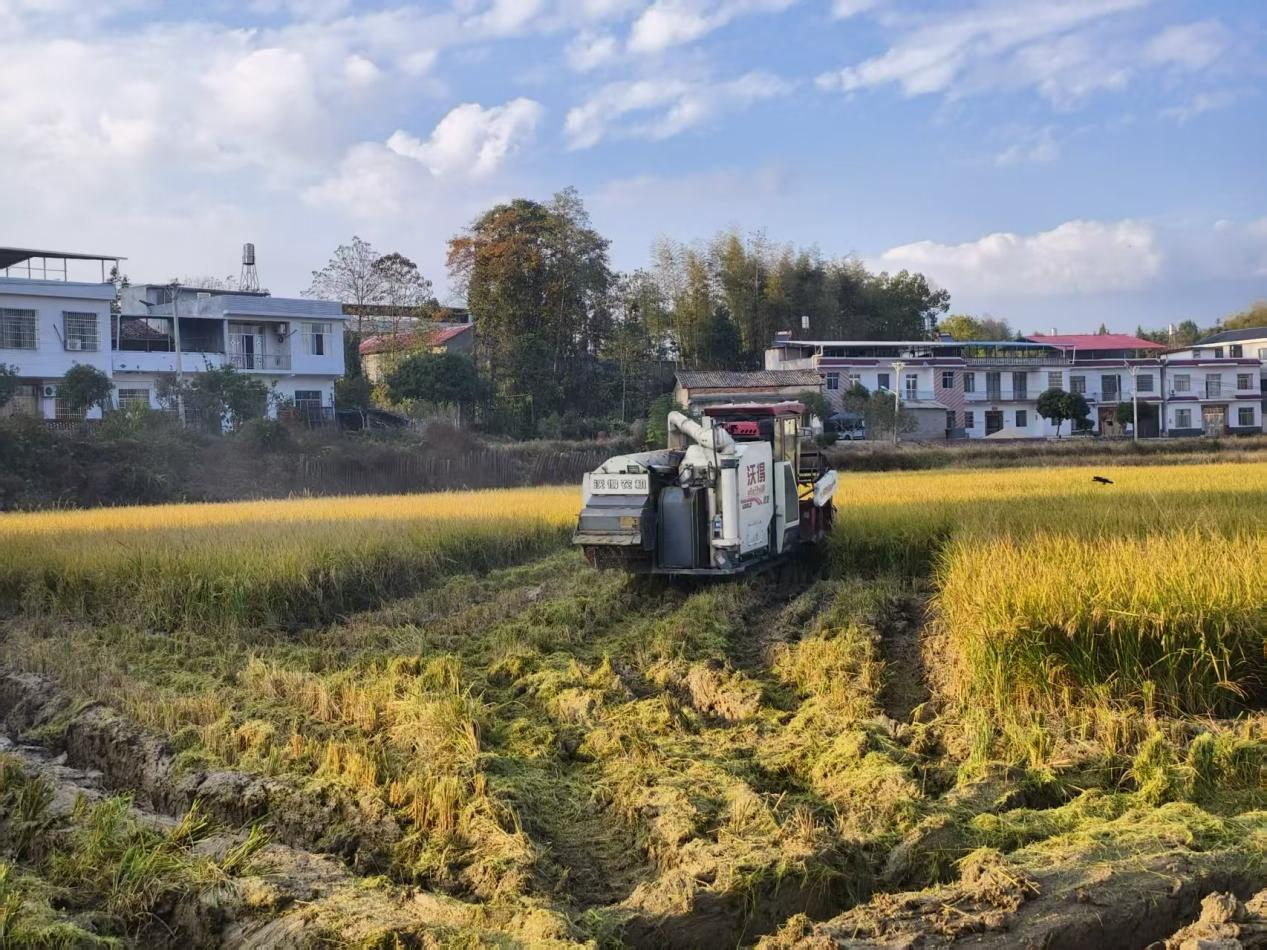 【通讯员 胡淑芬 黎红霞】禾海稻浪,金穗飘香。站在田埂上远眺,满眼皆是沉甸甸的金黄稻穗。大型收割机穿梭田间,伴随着机械的轰鸣声,金黄饱满的稻穗被尽数收入机舱,一幅喜人的丰收画卷在田野间铺展。连日来,通城县北港镇沉山村抢抓晴好天气,开镰抢收,确保颗粒归仓。