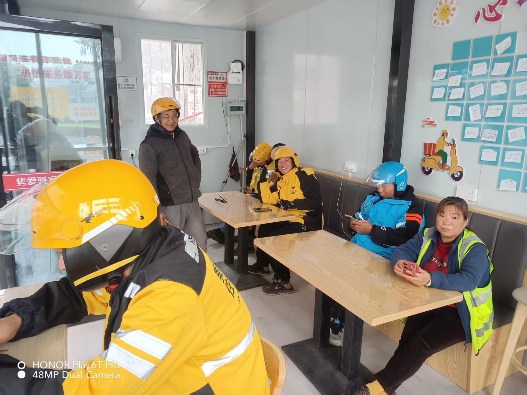 驿站虽小,功能俱全。站内配齐桌椅、空调、饮水机、微波炉、充电插座等便民设施,全方位满足快递员、外卖配送员、环卫工人等户外劳动者 “冷可取暖、热可纳凉、渴可饮水、累可歇脚” 的核心需求,让奔波在一线的新就业群体告别 “风吹日晒”,拥有了遮风挡雨的温暖港湾。