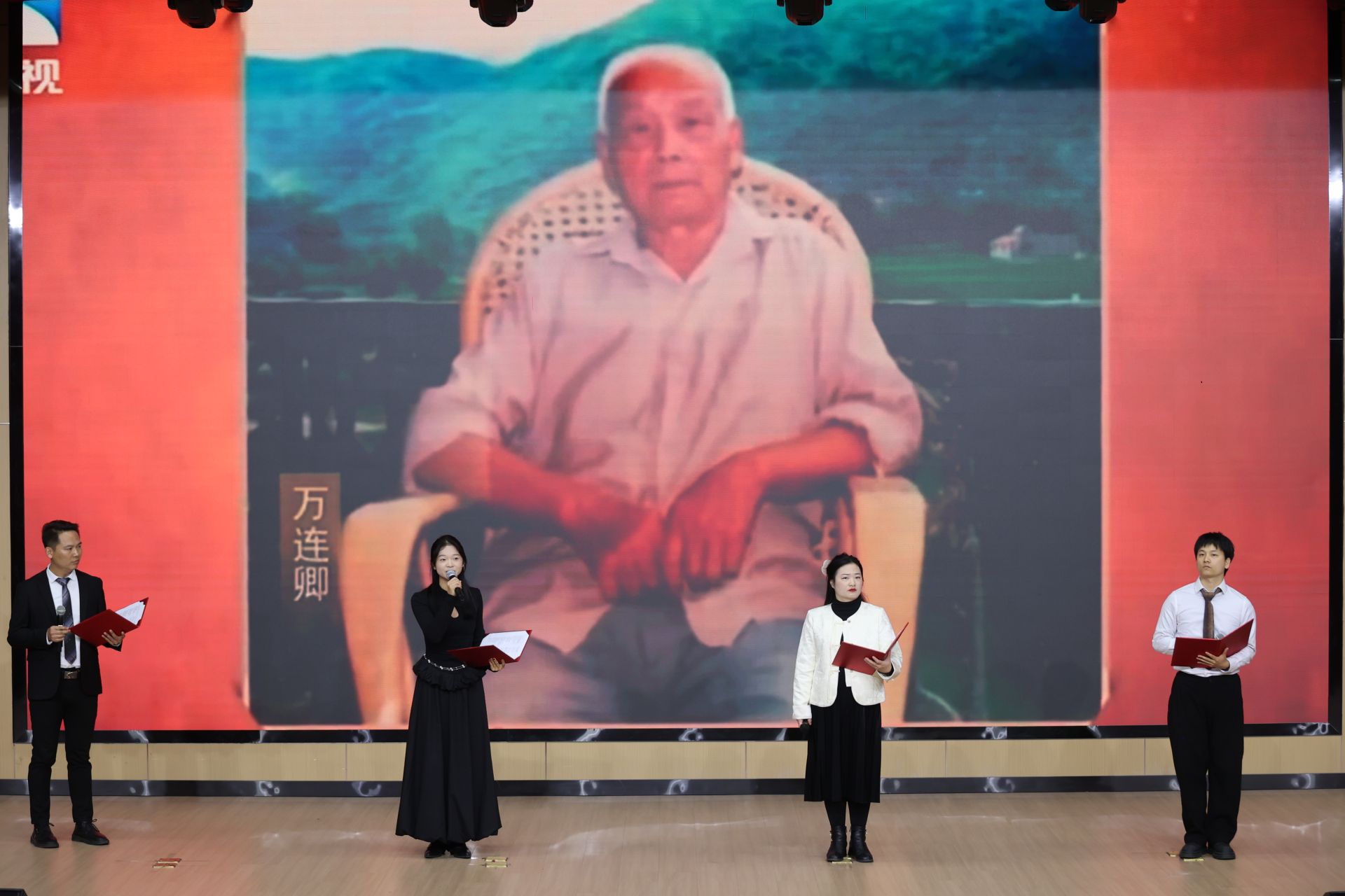 宣讲员吴石祥团队带来的集体朗诵《血染四行》,饱含深情地再现了八百壮士死守四行仓库的悲壮历史。“我们没有投降!我们绝不投降!”的铿锵誓言,激荡起全场观众强烈的爱国情怀与民族自豪感。