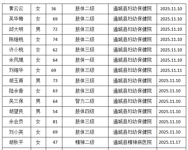 公示时间为: 2025年11月17日~ 2025 年11月21日(5个工作日)。请对照《残疾人残疾分类和分级》(GB/T26341-2010),如认为公示对象不符合残疾标准,或评定过程存在弄虚作假行为,可在公示期间向通城县残联反映。联系电话:0715-4338773 联系地址:通城县隽水镇城西新区县残联办公室(邮编437400)。