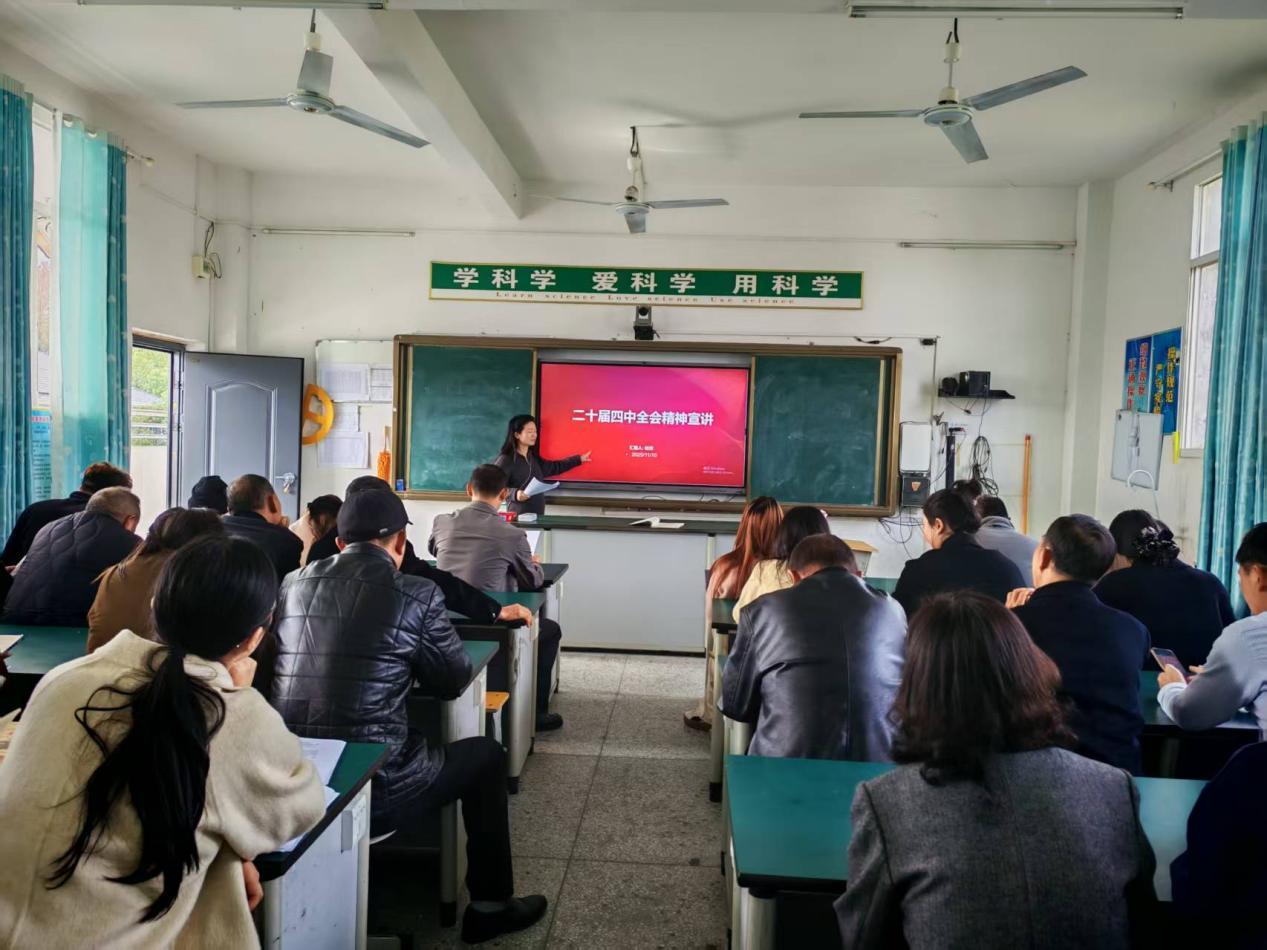 【通讯员 杜姣】11月14日上午,通城县沙堆中心完小精准开展党的二十届四中全会精神分层宣讲活动,面向沙堆镇小学教联体党支部、通城县沙堆中心完小全体师生靶向传递全会要义,凝聚育人合力。