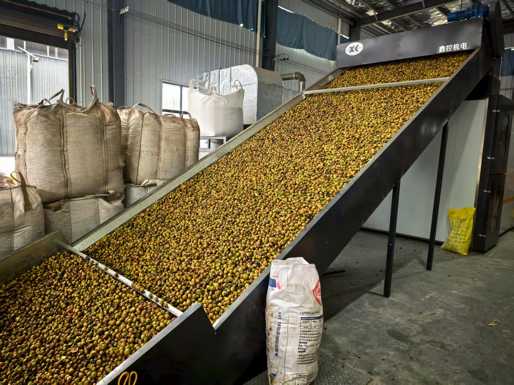 新引进的剥皮脱壳设备发出规律性的运转声,油茶果在这套设备中完成了从去壳到分选的全流程。“破籽率低于0.3%”的技术指标,意味着几乎每一颗油茶籽都能完好无损地进入下一道工序。