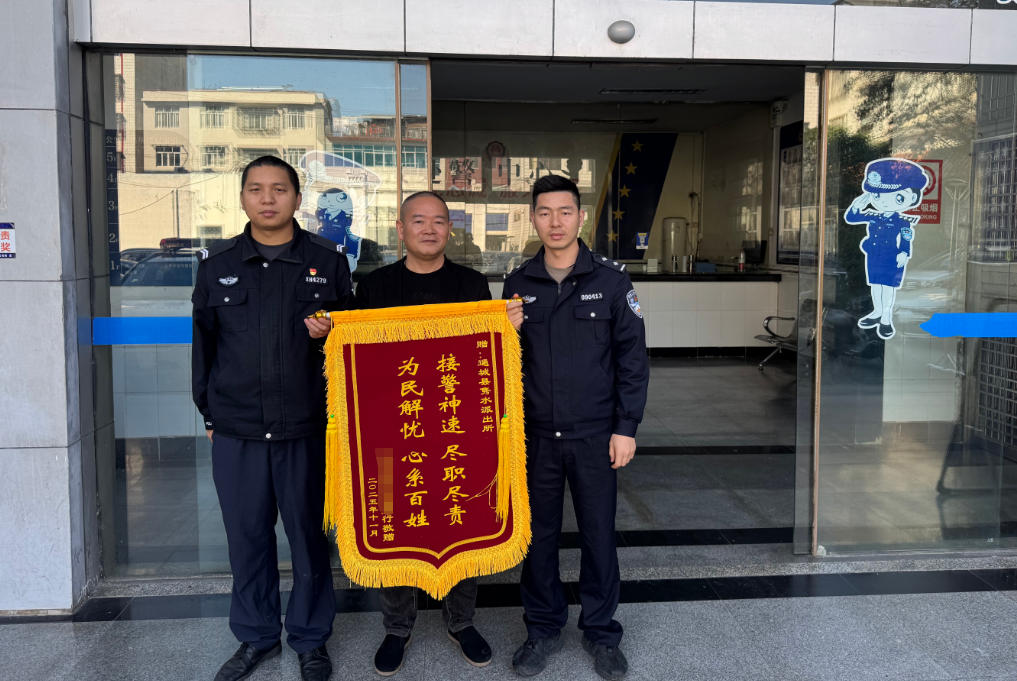 11月14日上午,受害人代表专程来到隽水派出所,将一面印有“接警神速尽职尽责 为民解忧心系百姓”的锦旗亲手送到办案民警手中,对公安机关快速侦破案件、及时挽回群众损失、全力维护辖区社会治安秩序的高效工作表示衷心感谢。