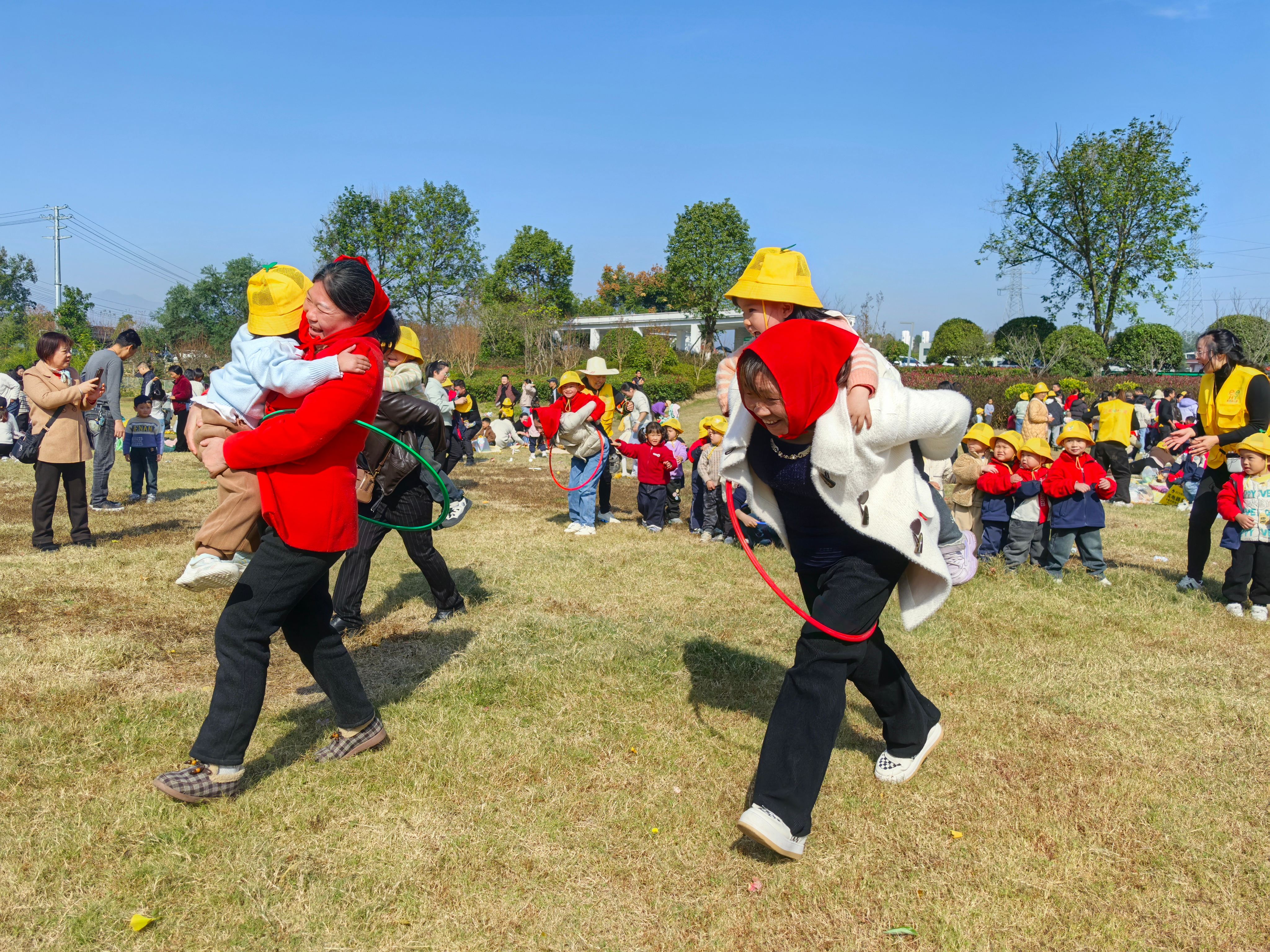 亲子游戏环节更是热闹非凡,活动现场设置了”猪八戒背媳妇””公鸡下蛋”等趣味游戏。在”小猴子爬树”环节,家长扮演“大树”,幼儿扮演“小猴子”,手脚并用从家长腿部一侧爬到背部,再从另一侧爬下,需要亲子配合,考验默契程度。这些游戏不仅锻炼了孩子们的身体协调能力,更让亲子关系在互动中升温。