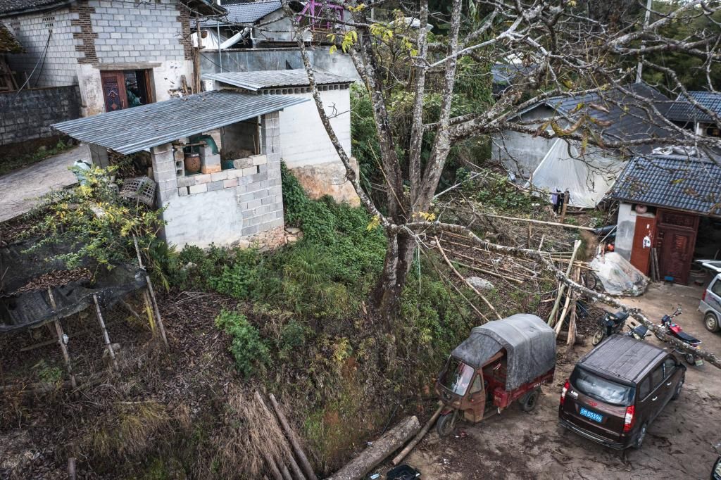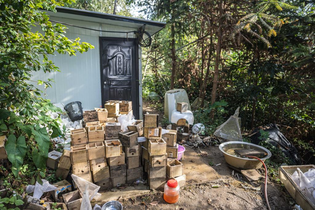 11月19日拍摄的云南省保山市龙陵县龙山镇河头村,村中可见村民在家中、门外棚房养殖的胡蜂。