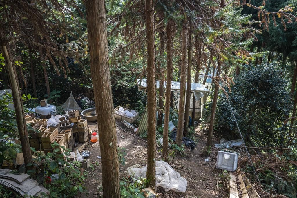 这是11月19日在云南省保山市龙陵县龙山镇河头村拍摄的一处野外养蜂地。