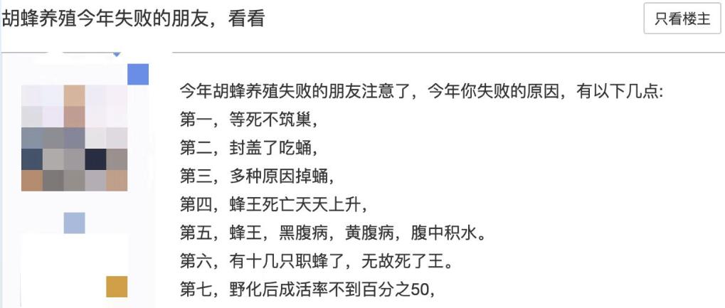 某网络平台上,网友交流胡蜂养殖失败的情况。