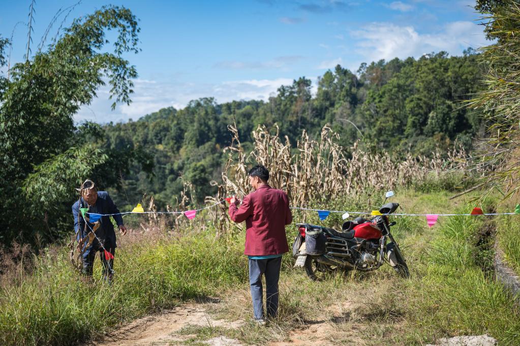 11月19日,在云南省保山市龙陵县龙山镇,龙陵县黄氏蜂业有限公司工作人员检查一处警示线。