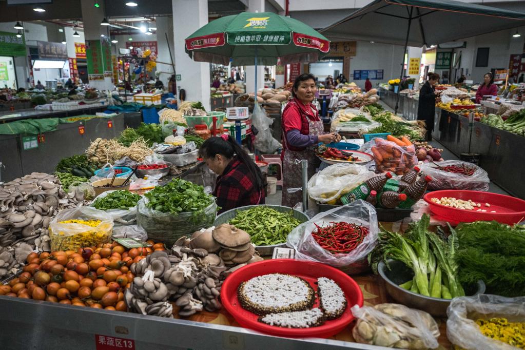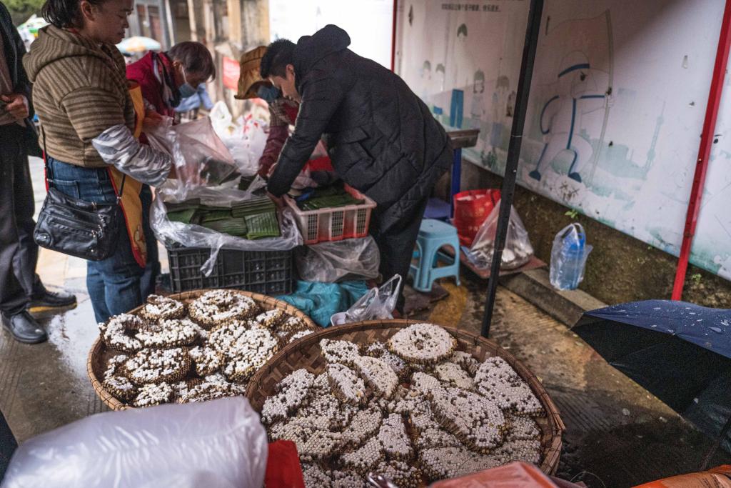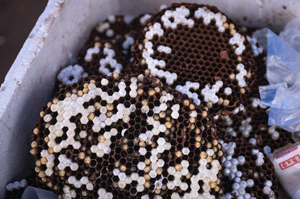 11月20日,商户在云南省保山市龙陵县一处农贸市场内售卖胡蜂蛹。