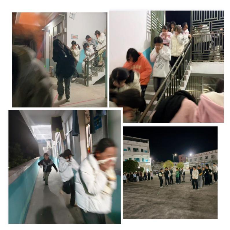 当晚7:50起,各班主任陆续抵达对应楼层,逐一提醒住校生穿好鞋子、随身携带毛巾,明确告知演练要求,严禁携带无关物品。8:05,寝室长提前完成本班住校生人数清点,确保全员到位。8:10,演练正式启动,模拟寝室区域突发火情,警报声响起后,住校生在班主任及引导组的有序指引下,迅速用湿毛巾捂住口鼻,弯腰低姿,沿着预定疏散路线快速撤离。抵达学校指定操场区域后,学生严格按照男生、女生分区站立,各班班主任第一时间清点人数,确认无误后向演练领导小组汇报,整个过程紧张有序、规范高效,无推搡、喧哗等现象。