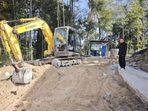 在徐家屋场段施工现场,机械轰鸣,工人正有序开展路基平整作业。该路段因多年使用,部分路基出现沉降,影响通行安全。目前工程重点是对路基进行加固处理,为后续路面施工打下坚实基础。