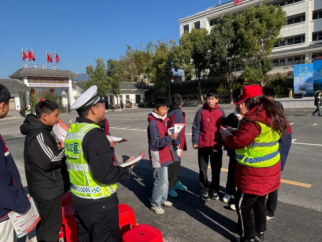 为进一步增强青少年交通安全意识,11月19日上午,交通管理大队联合县道路交通安全志愿者协会,走进大坪乡杨部中学,开展“冬季校园路,安全第一步”主题交通安全宣传教育活动。