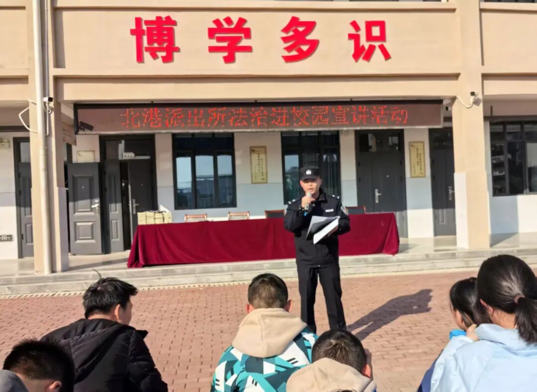 为应对未成年人违法犯罪呈低龄化、多发性趋势,11月21日,北港派出所组织民警走进北港中学,开展“法治护航青春”专题教育活动。针对当前未成年人盗窃、寻衅滋事案件增多,电信网络诈骗高发的治安形势,民警精心选取辖区内杨某等人盗窃案、袁某等人寻衅滋事案等典型案例,通过“以案说法”的形式深入剖析案件成因与法律后果。