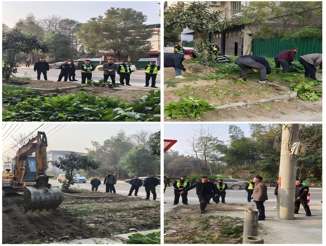 行动现场,党员干部们率先垂范,手持工具俯身清理花坛内的蔬菜植株,用实际行动带动群众参与;执法人员严格规范履职,一边维护现场秩序,一边向围观群众细致宣讲违规占绿的危害及人居环境整治政策;挖掘机同步进场作业,对清理后的地块进行平整,确保整治区域整洁有序。据不完全统计,此次行动共清理蔬菜植株达2000余株,有效破解花坛违规种植乱象。