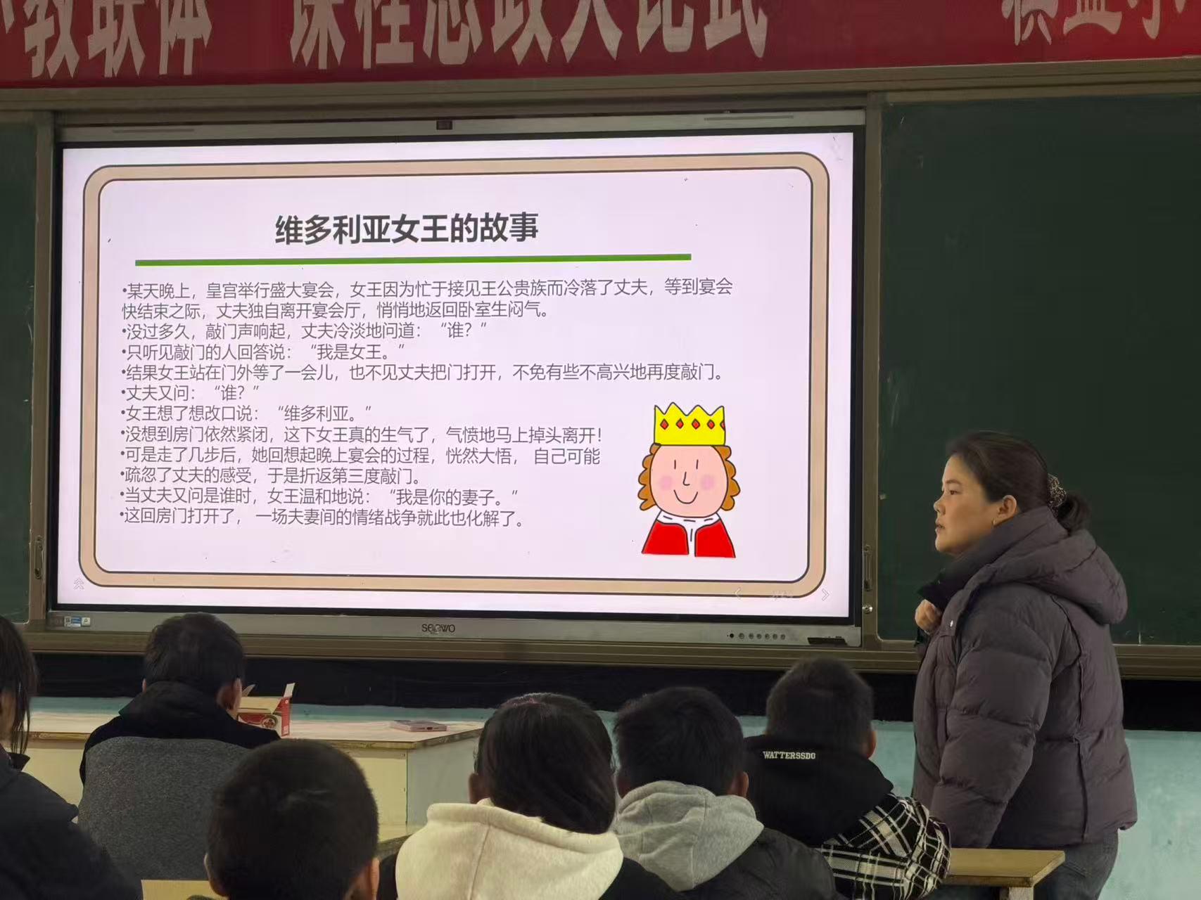 朱老师通过故事分享、情景模拟等形式,带领学生分析不同处事方式的结果,让大家直观感受到,面对分歧时,一味固执己见可能加剧矛盾,而适当妥协、灵活沟通,往往能找到更优解决方案。同时,她还教会学生把握妥协的“度”,明确妥协需坚守原则底线,既要包容他人,也要保护自己的合理权益,做到“有理、有度、有温度”地处理问题。