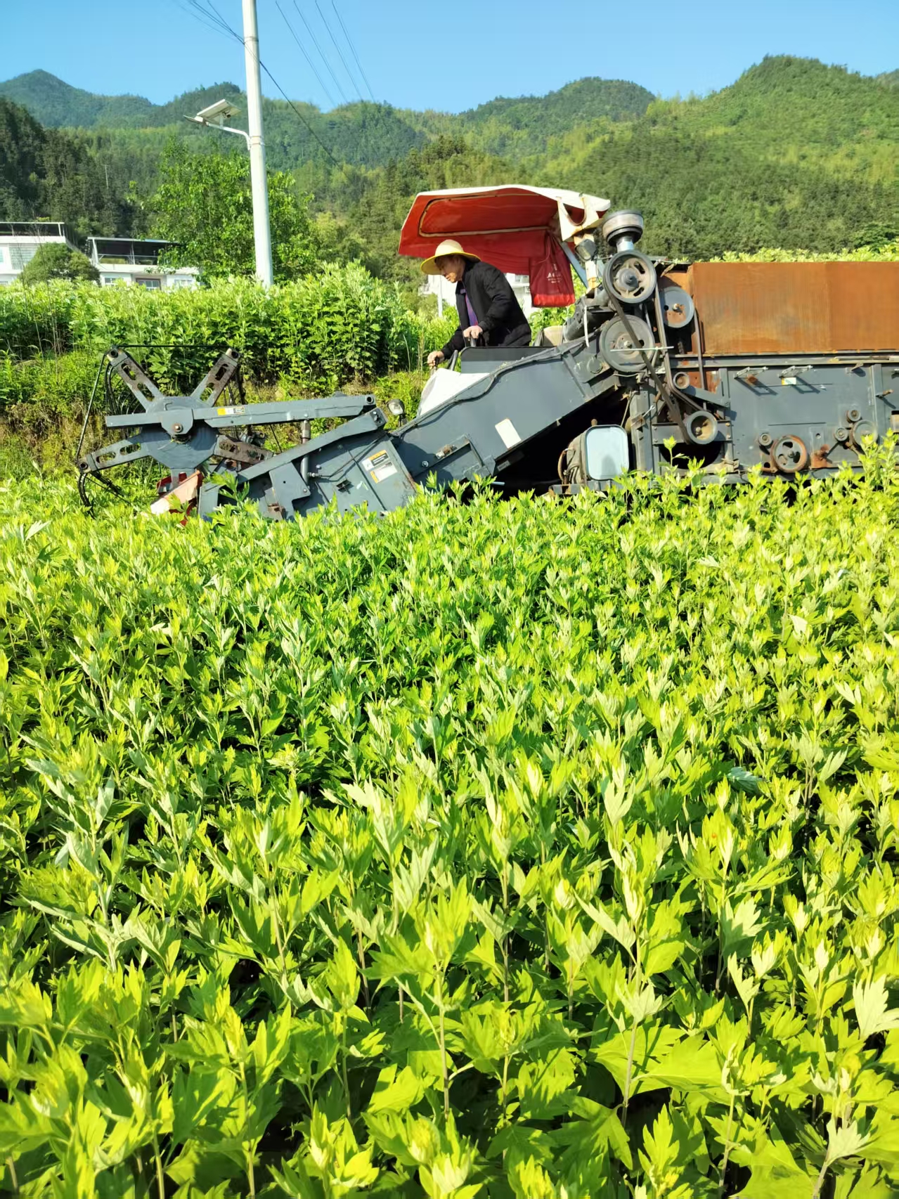 走进东港村艾草基地,收割机穿梭作业,村民们忙着晾晒、打包艾草,一派丰收景象。据合作社负责人介绍,通过与本地龙头企业艾舒宝深度合作,鲜艾草经加工后制成艾条、艾草精油等产品,附加值大幅提升。
