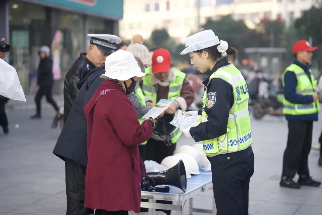 【通讯员 李佳玫】为切实增强摩托车、电动自行车驾乘人员交通安全意识,全力提升安全头盔佩戴率,筑牢道路交通安全防线,12月17日上午,通城县公安局交通管理大队联合县道路交通志愿者协会等部门,在中百三合超市广场开展“守护夕阳红,文明交通安全伴你行”交通安全宣传活动,以接地气的形式普及安全知识,引导群众养成骑乘两轮车辆自觉佩戴安全头盔的良好习惯。