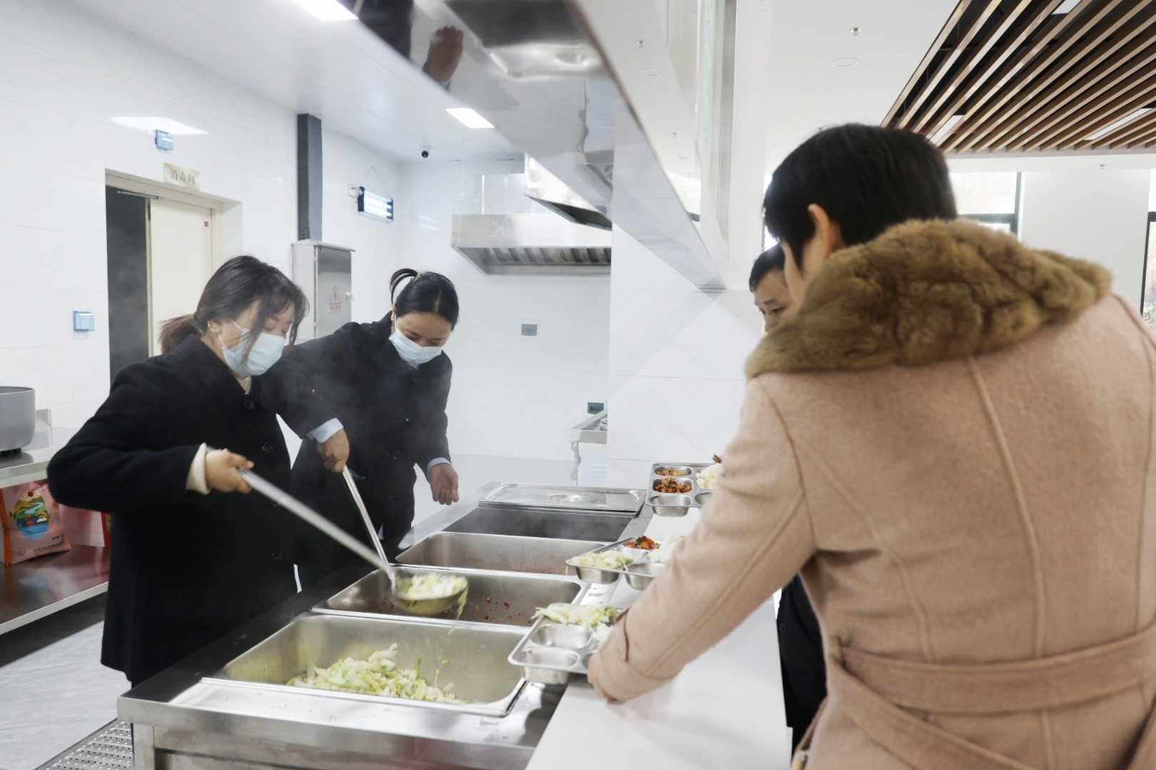 12月23日,在石南高新技术产业示范园职工之家食堂,明亮通透、整洁有序的就餐环境令人眼前一亮。后厨内,工作人员有序忙碌,食材处理、烹饪加工全程透明可视。明厨亮灶的设计,让员工吃得放心。