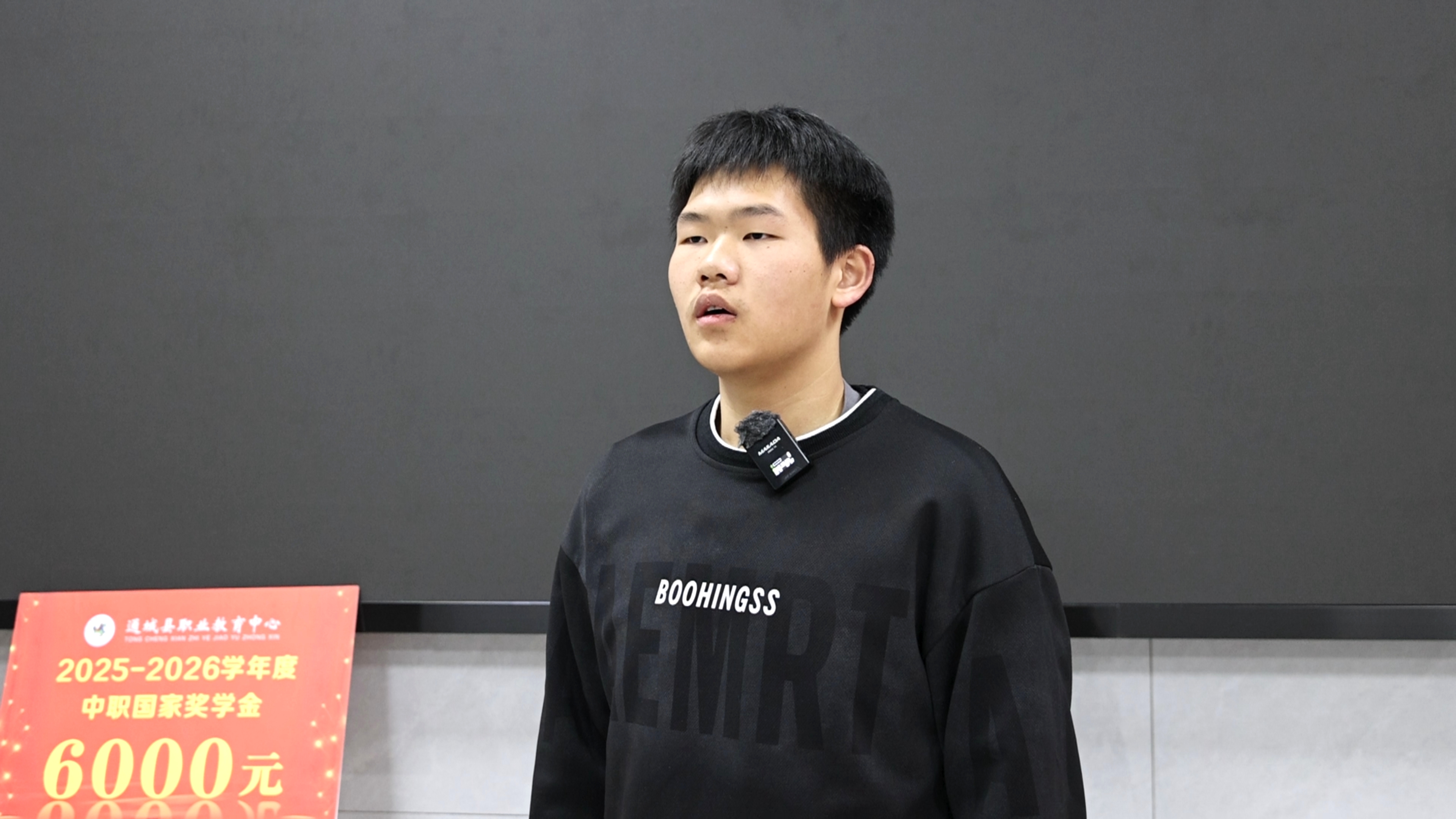 通城县教育中心学生 吴品归:我很荣幸作为国家奖学金的获得者上台发言,这份成果离不开学校和老师的栽培,也离不开我自己的努力。今后的日子里,我会更加努力地学习专业知识,锻炼专业技艺,同时也在这里祝大家元旦快乐。
