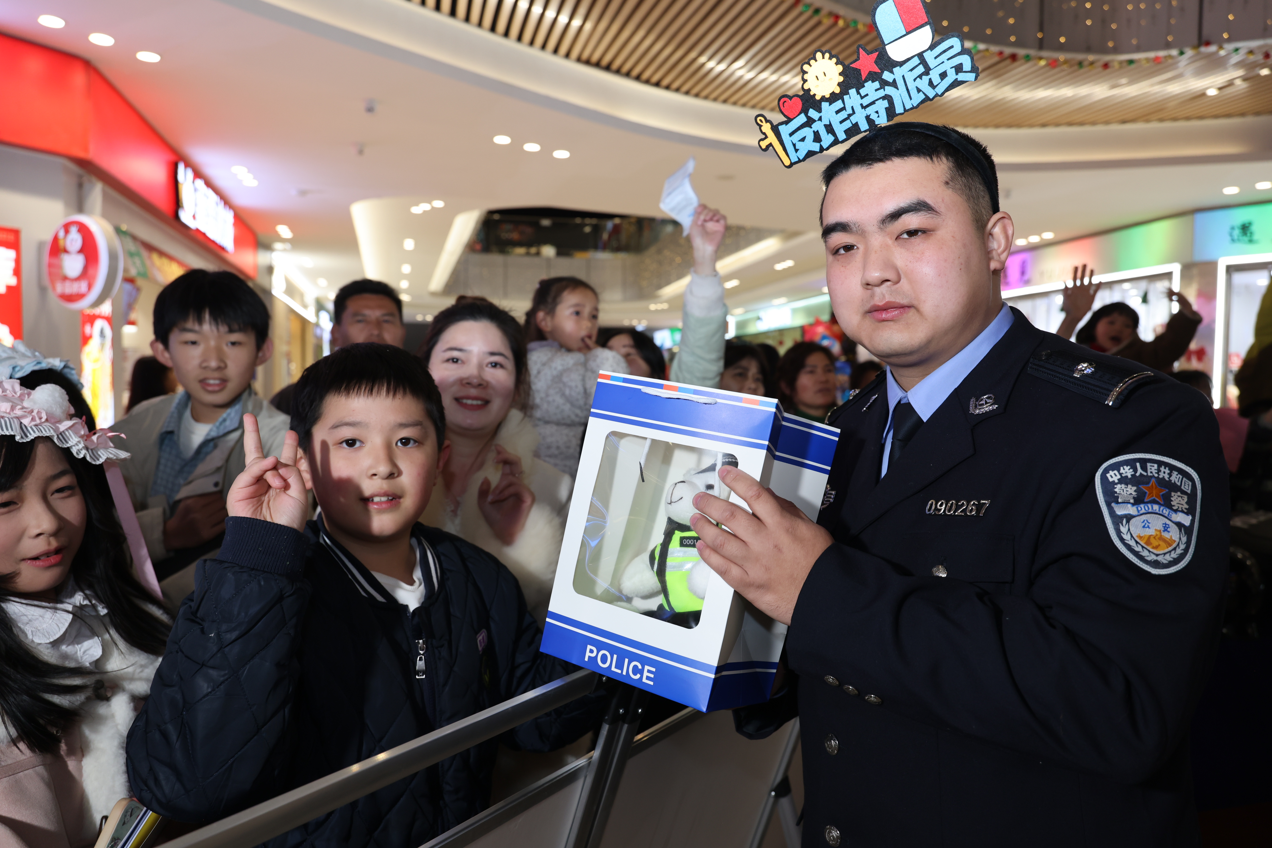 互动环节将气氛推向高潮。装备展示区内,防暴盾牌、头盔等警用装备吸引众多群众驻足。民警耐心讲解并引导安全体验,让市民“零距离”感受平安守护的力量,小朋友们兴奋不已,直呼“长大也要当警察”。反诈知识有奖竞答同样火爆,主持人抛出贴近生活的反诈问题,群众踊跃抢答,在轻松互动中掌握了实用防骗技巧,答对者还收获了精美纪念品。