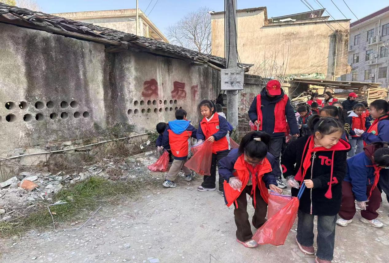 此次活动以“教育一个学生、带动一个家庭、美化一个村庄”为核心目标,天灯岭完小的师生志愿者们在湾船咀村村干部的带领下,手持垃圾袋,对村内主干道、田间沟渠、休闲广场等区域的白色垃圾、枯枝杂物进行集中清理。孩子们分工协作,弯腰捡拾垃圾的身影成为乡村冬日里一道温暖的风景线,他们用实际行动践行环保理念,也让“爱护环境”的意识在劳动中生根发芽。