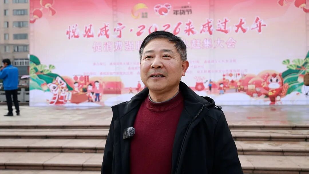 顾客 徐先生: 我一大早就来了,这里的蔬菜一看就是农家本地菜,腊肉闻着也香。我们家人口多,采购的商品也多,过年需要的干货、鲜货差不多在这一次性都能买齐,这次活动我感觉非常有意义。